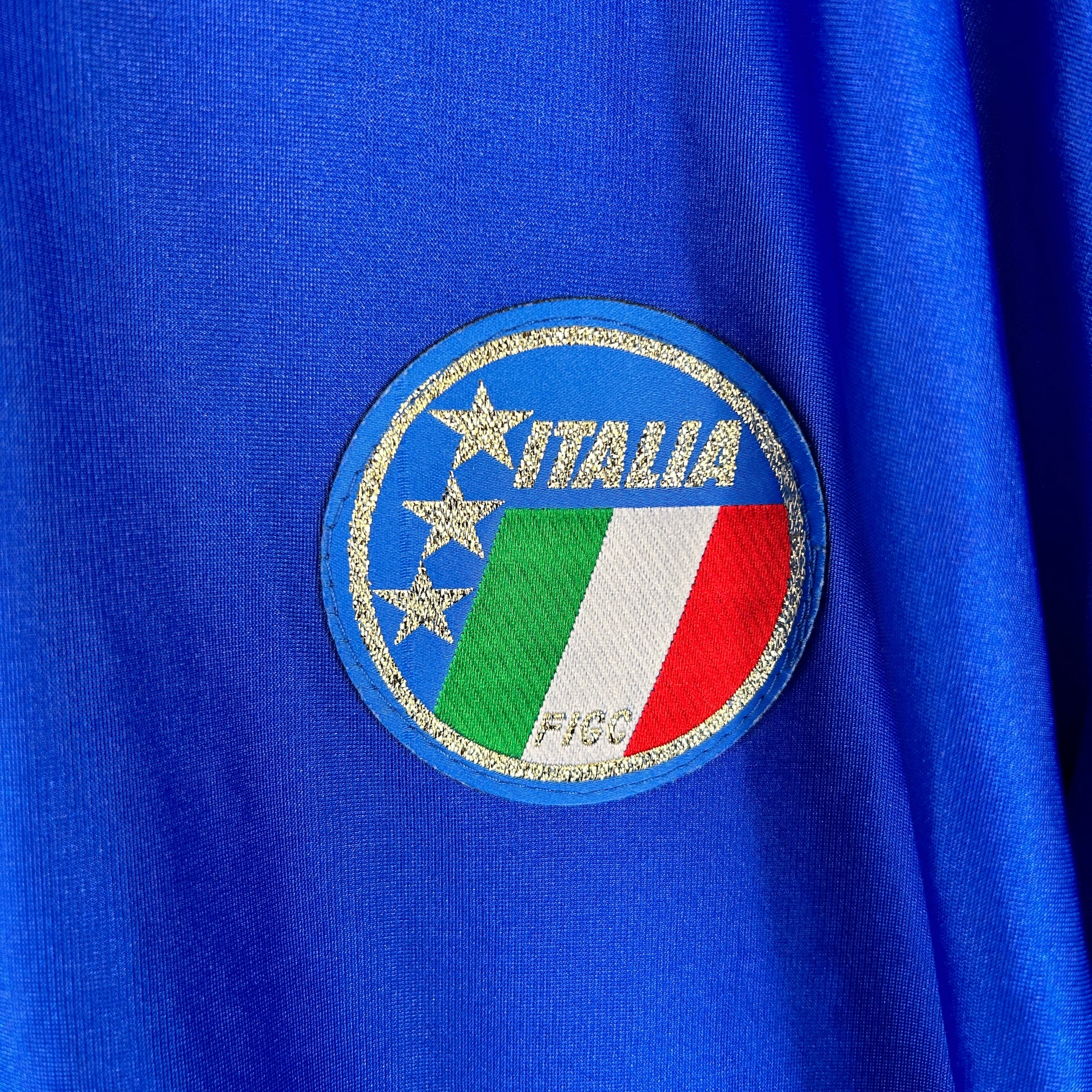 Shirt info: This was the home shirt for Italy in 1988 and 1990. It is a classic Italy shirt with the colours of the flag incorporated into the collar.