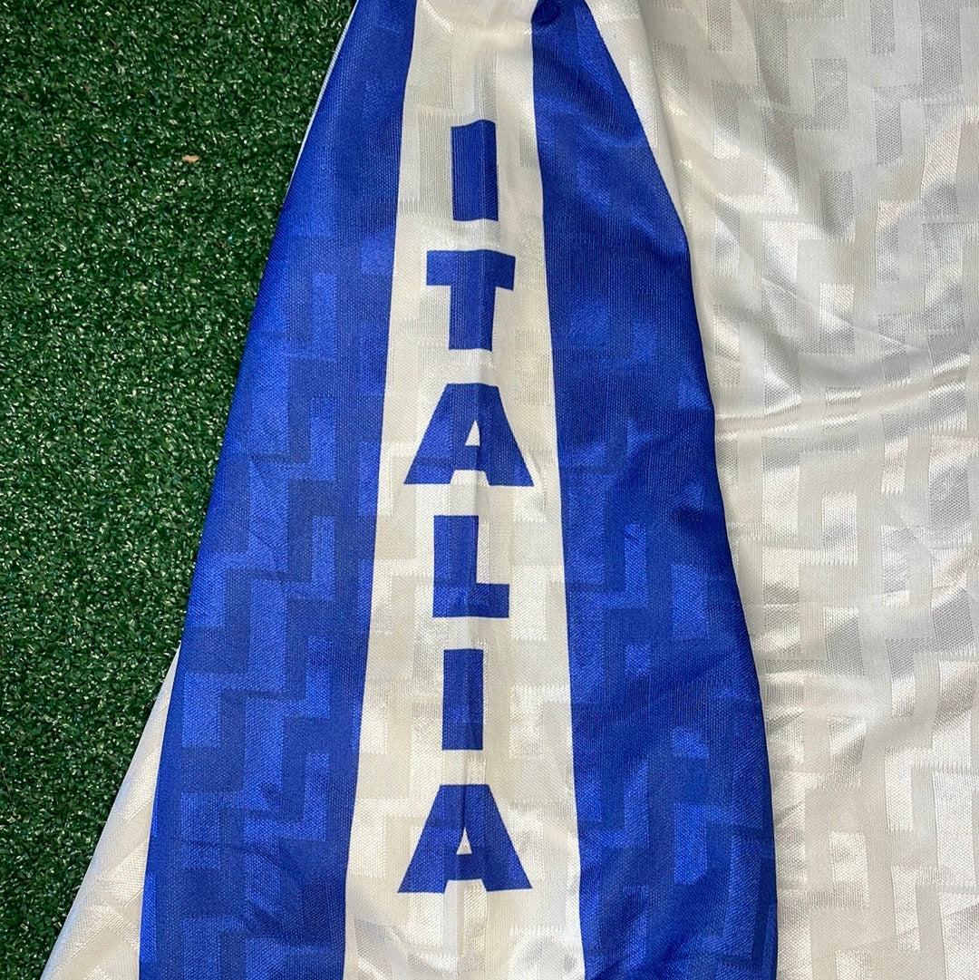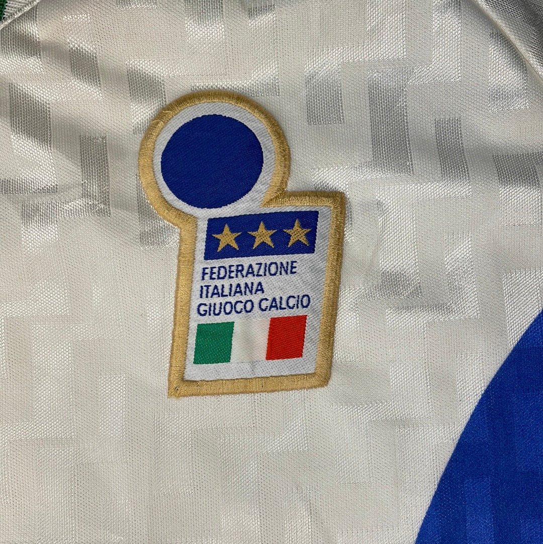 Shirt info: This was the Italy training shirt for Euro 1996 and is absolutely stunning in the flesh. The condition of this shirt makes it an excellent purchase for a collector. The design is fantastic with ITALY down one sleeve. This is a brilliant training shirt, possibly better than the Italy home shirts of the same era.