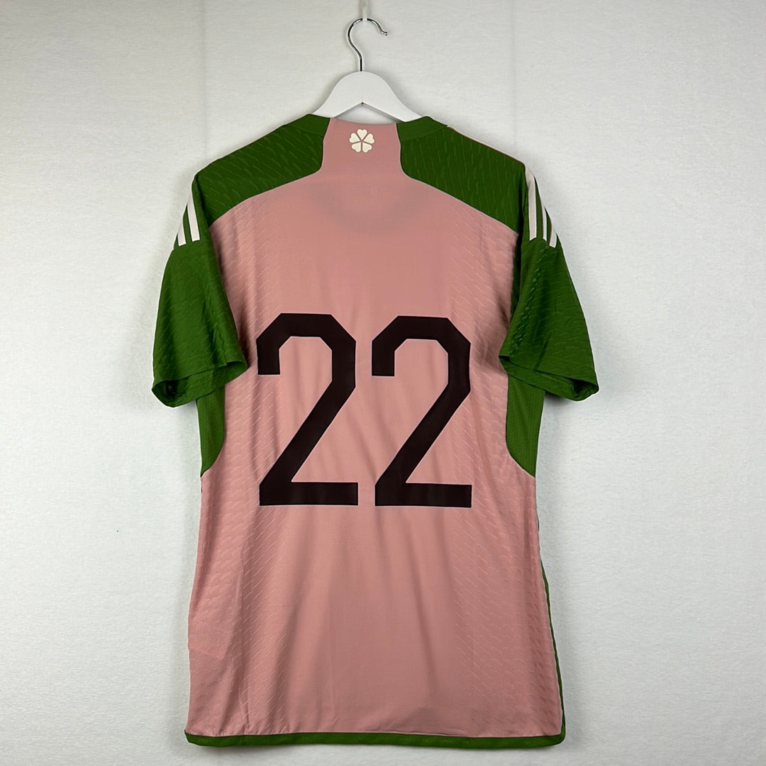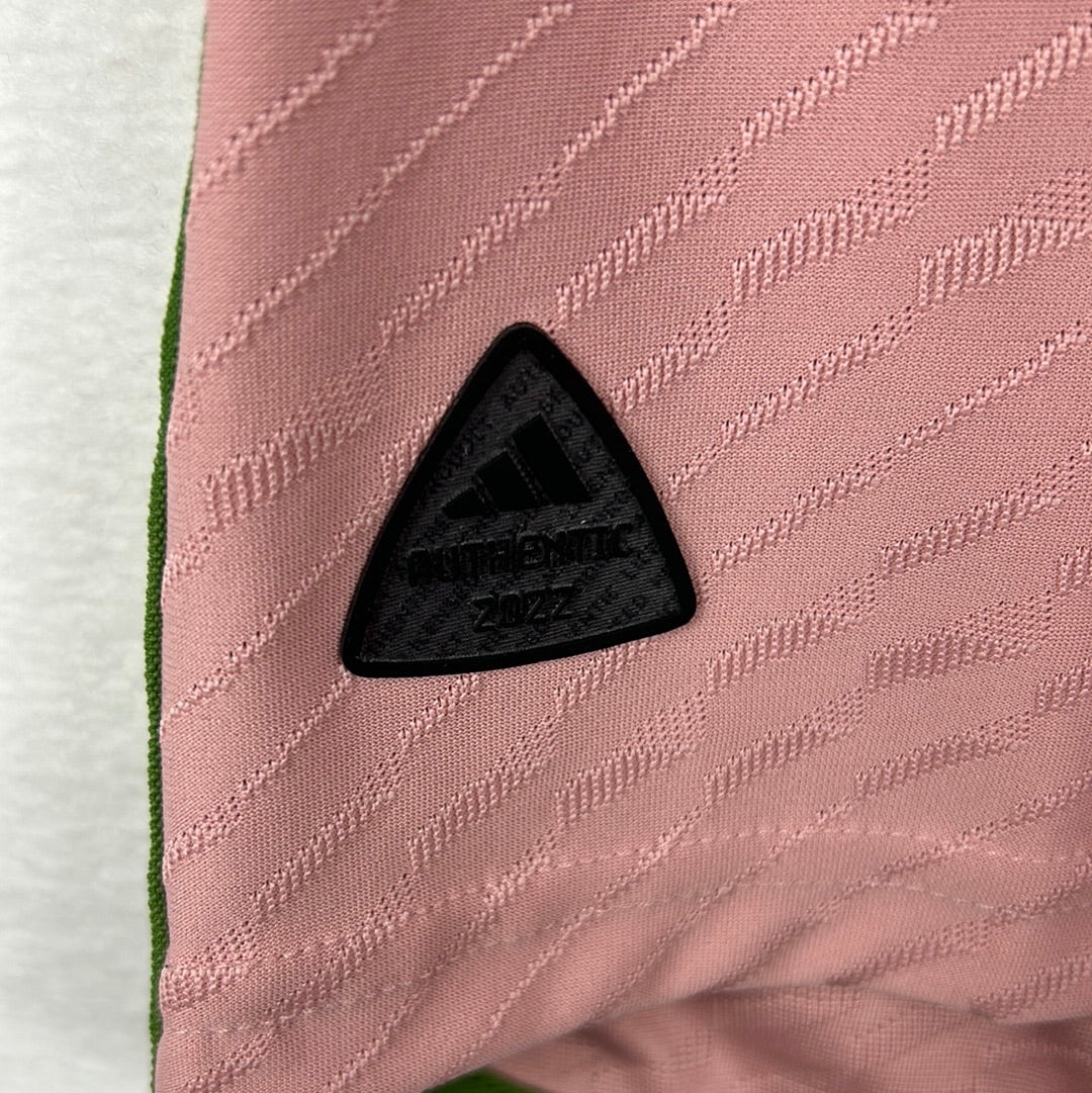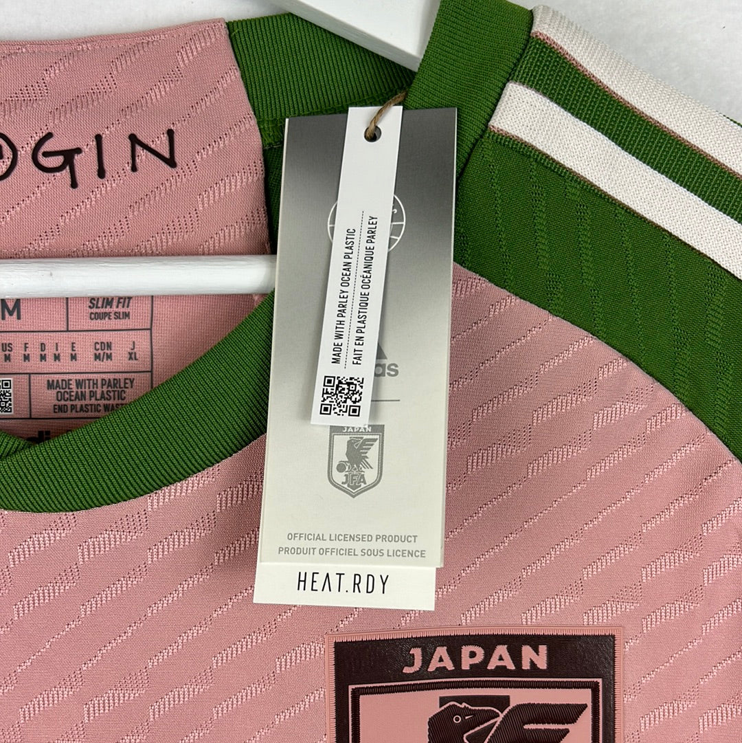 Shirt info: A beautiful Japan 2022 third shirt in pink with green touches. This was designed by a famous Japanese designer called NIGO. This is a stunning shirt and one of the best Japan shirts in recent memory, and they have had a few excellent shirts.