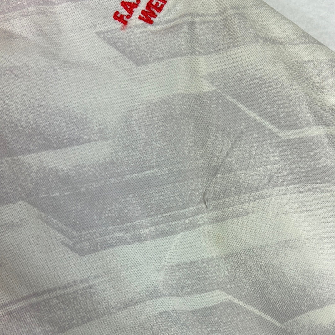 Shirt info: A commemorative shirt for the Kidderminster Harriers in the 1991 FA Trophy final. The shirt has special embroidery on the sleeve for the final.