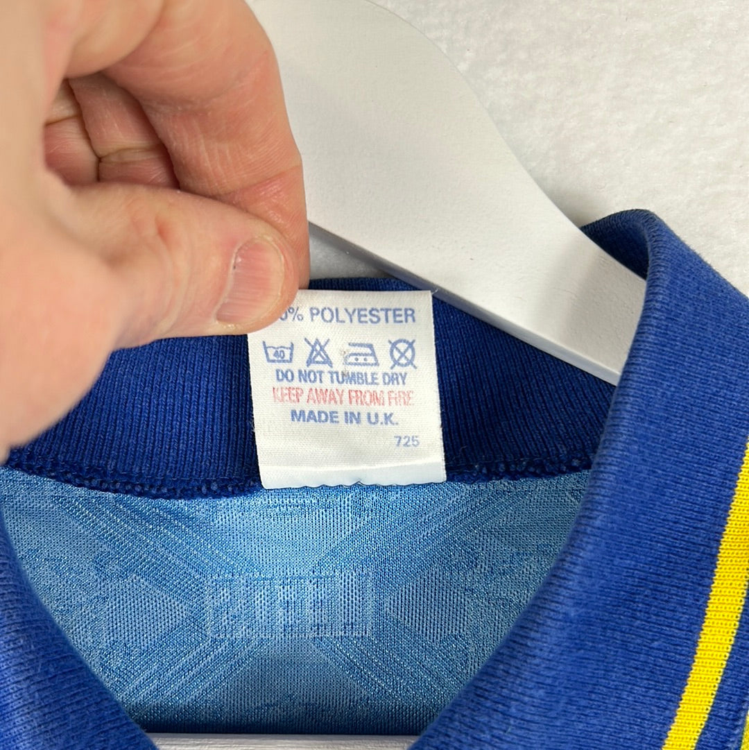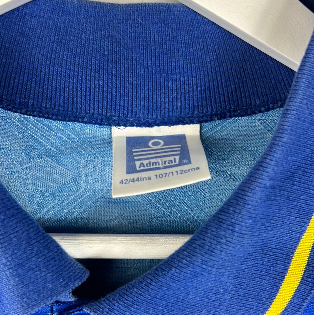 Shirt info: One of the best Vintage Leeds United shirts from the 1990's in my opinion. This was only used for one season as Admiral was replaced by Asics in the 1992/1993 season. The shirt has a cool design with yellow tinges over a blue background. The design matches the away shirt of that season in alternative colours.