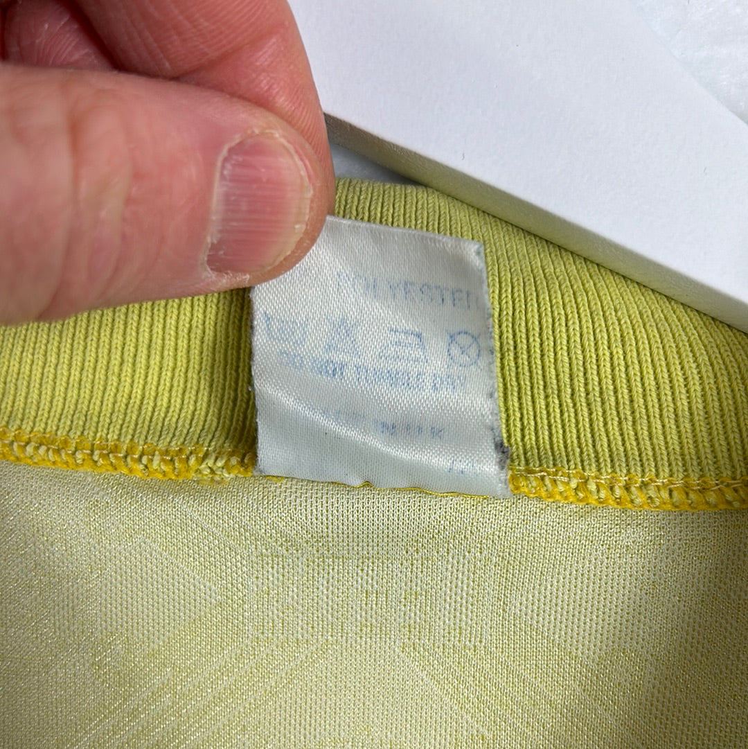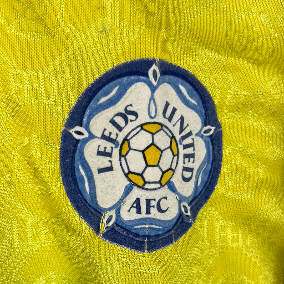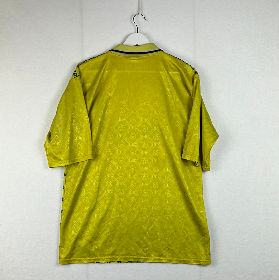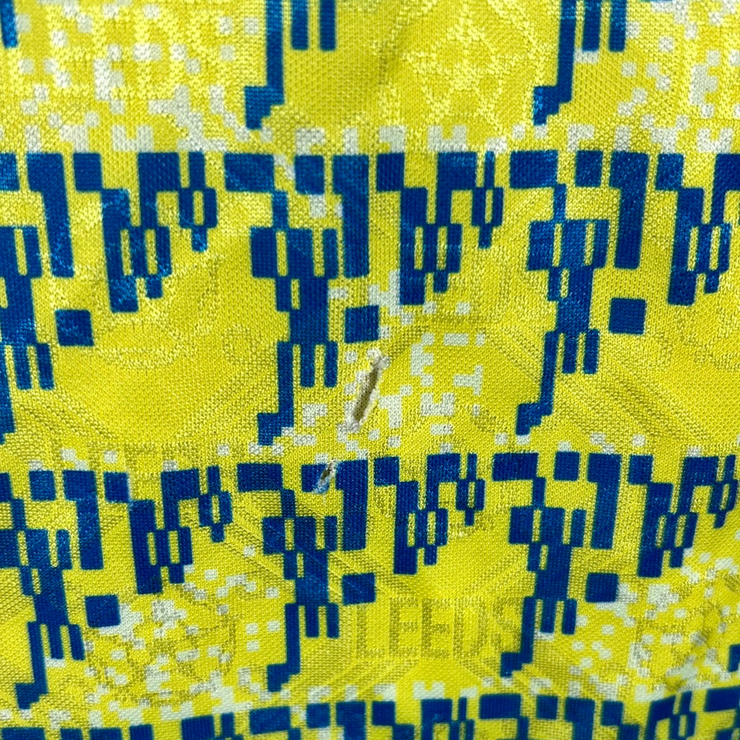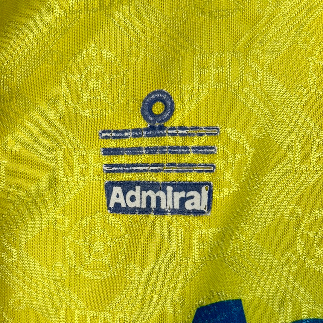 Shirt info: One of the best Vintage Leeds United shirts from the 1990's in my opinion. This was only used for one season as Admiral was replaced by Asics in the 1992/1993 season. The shirt has a cool design with blue tinges over a yellow background. The sponsor is printed in the material and the Admiral badge and Leeds badge are pressed. This is one of the best thirds in Leeds United shirt history