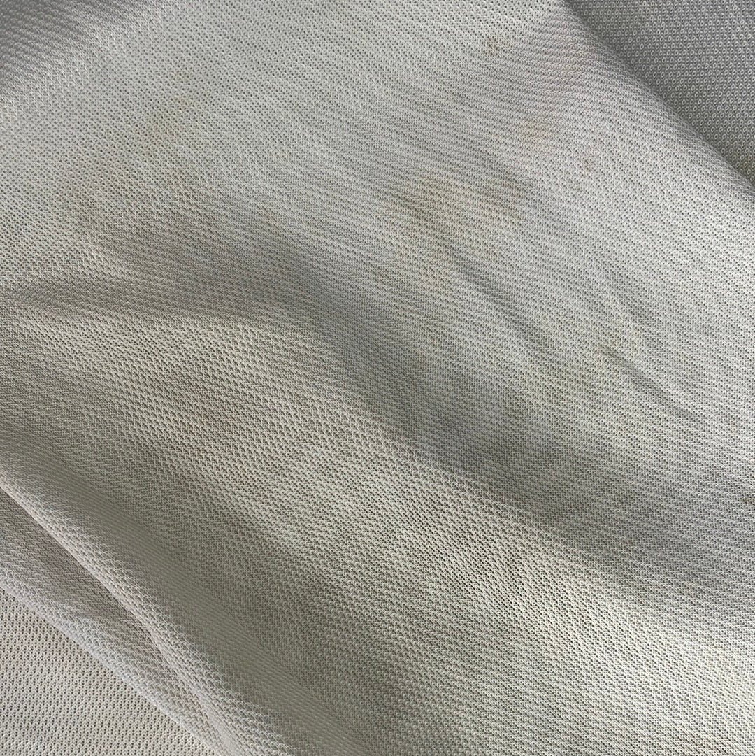 Condition Details: The material is in good condition with no noticeable pulls or bobbling. There are some marks, common with white shirts, that are light and could come out with the right care.