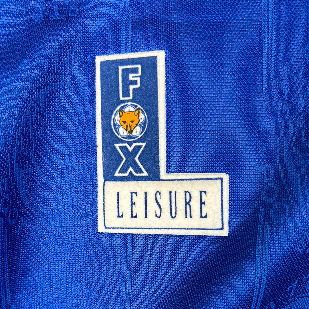 Shirt info: The home shirt for Leicester City in the 1993/1994 season and the 1994/1995 season. A blue shirt with a Fox Leisure embossed print and the Walkers logo.