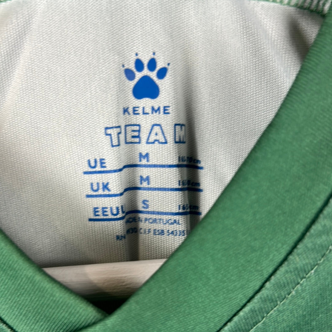 Shirt info: An authentic player-issue away shirt for Pape Diop at Levante UD. The shirt has a different feel to the material than the standard shirt. It has a sublimated Levante badge, sponsor, ‘Kelme’ logo. The green shirt has a red and blue stripe across the chest. The ‘P. Diop’ name set is printed in yellow on the back with more sublimated sponsors.