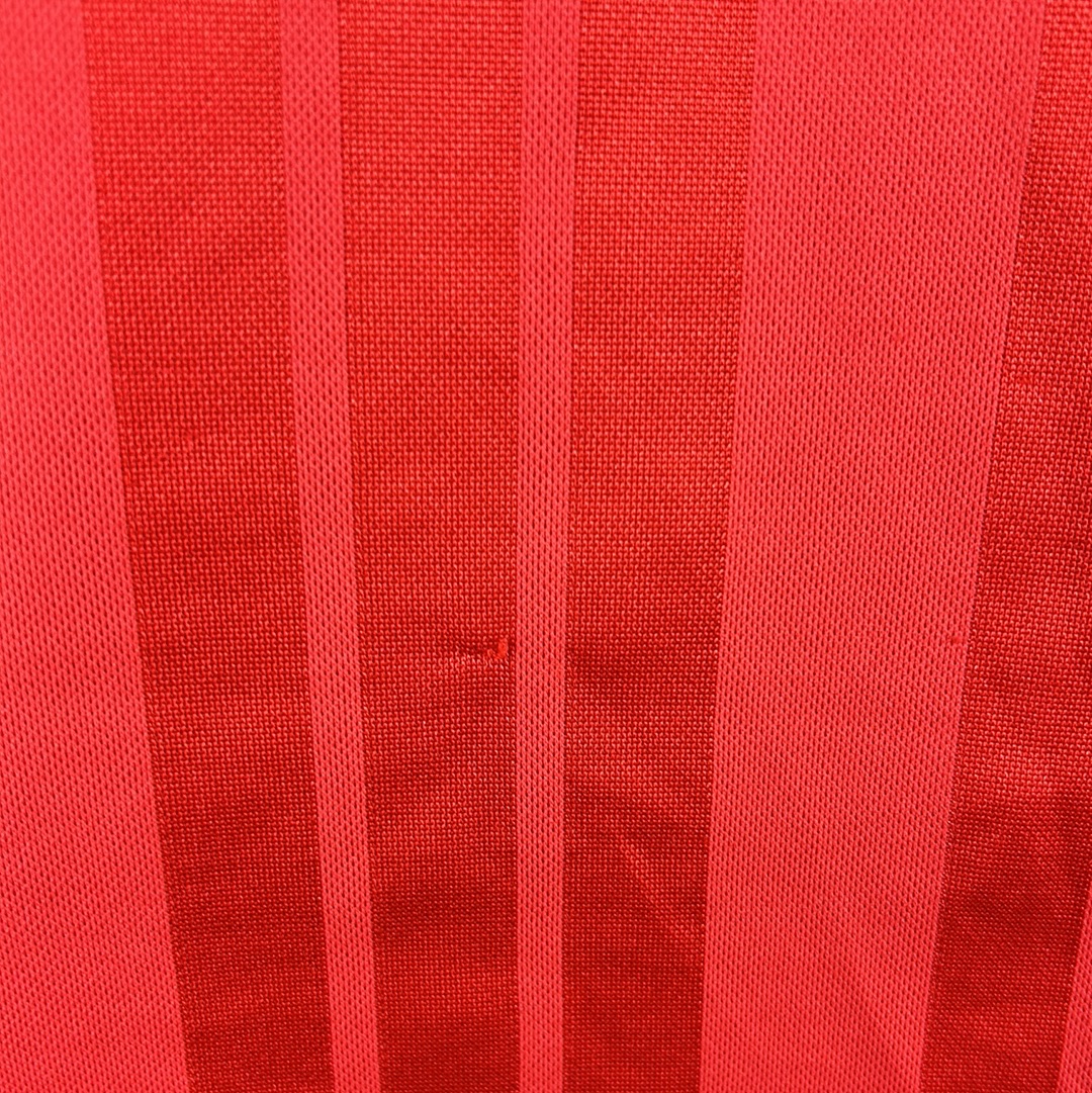 Shirt info: The Liverpool home shirt. Used as the home shirt in the 1993/1994 season and 1994/1995 season. The Adidas stripes are embroidered on. This was a classic Adidas template in the 1993/1994 season with numerous teams wearing this iconic design. It is a key shirt in Liverpool's kit history with the matching shorts also bearing 3 embroidered stripes.