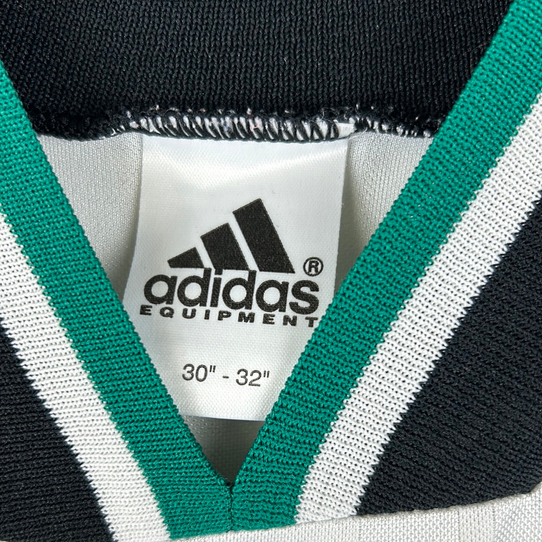 Shirt info: The away shirt for Liverpool was used in the 1993/1884 season and the 1994/1995 season. This follows the classic Adidas template of the time with the bold 3 stripes at the bottom of the shirt.