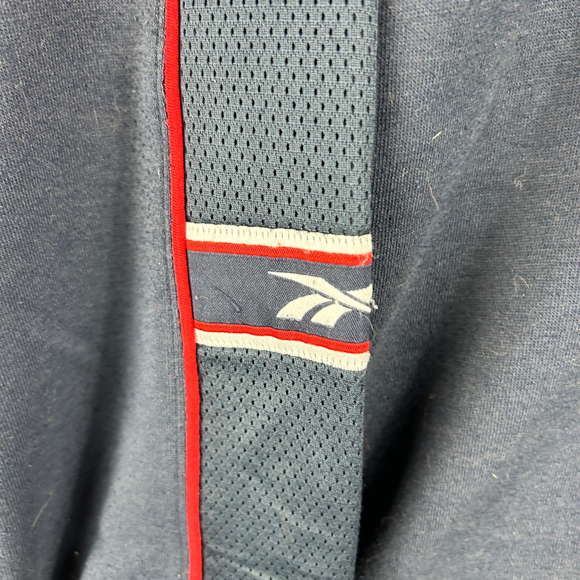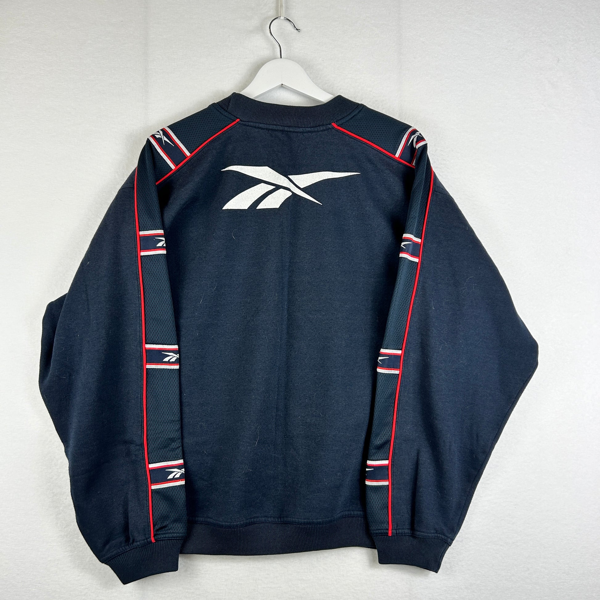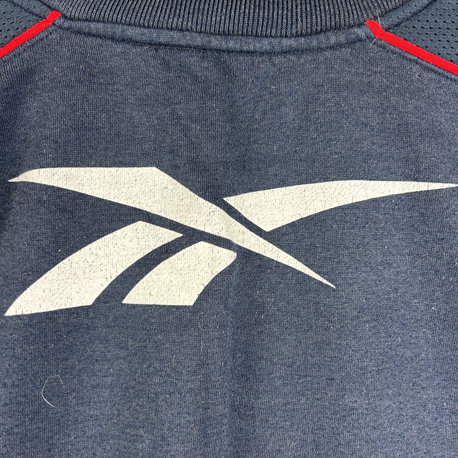 Shirt info: A Liverpool jumper/ sweatshirt from the 1997/1998 season. A dark blue Reebok jumper with Carlsberg sponsorship on the front. The sleeves have the Reebok logo going down them in patches.