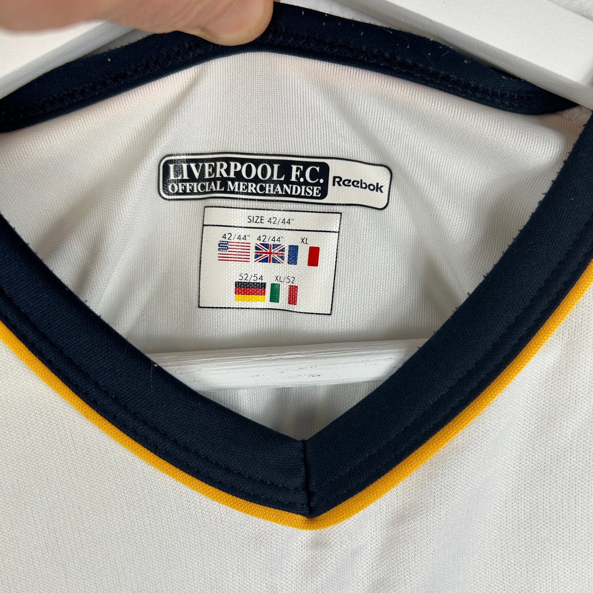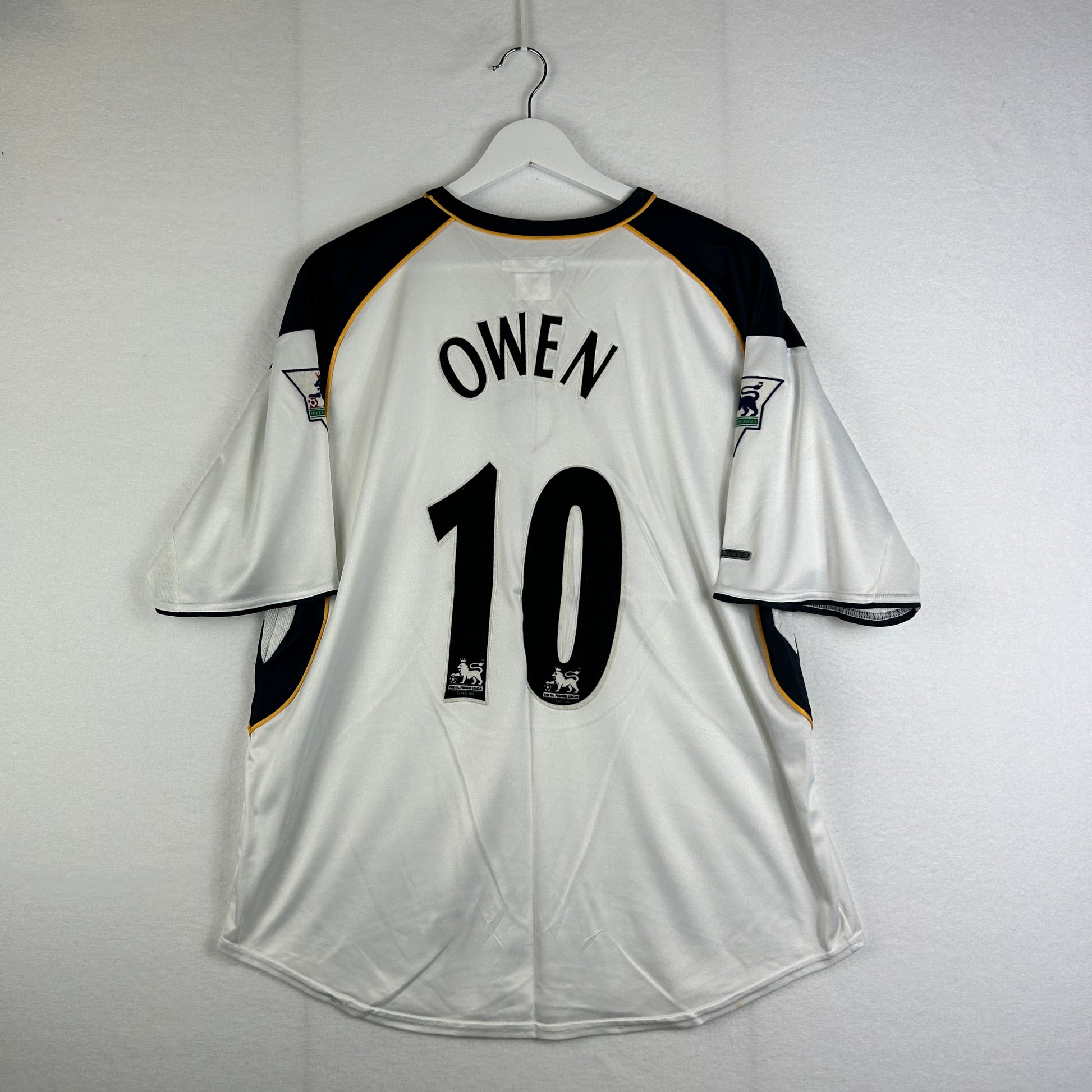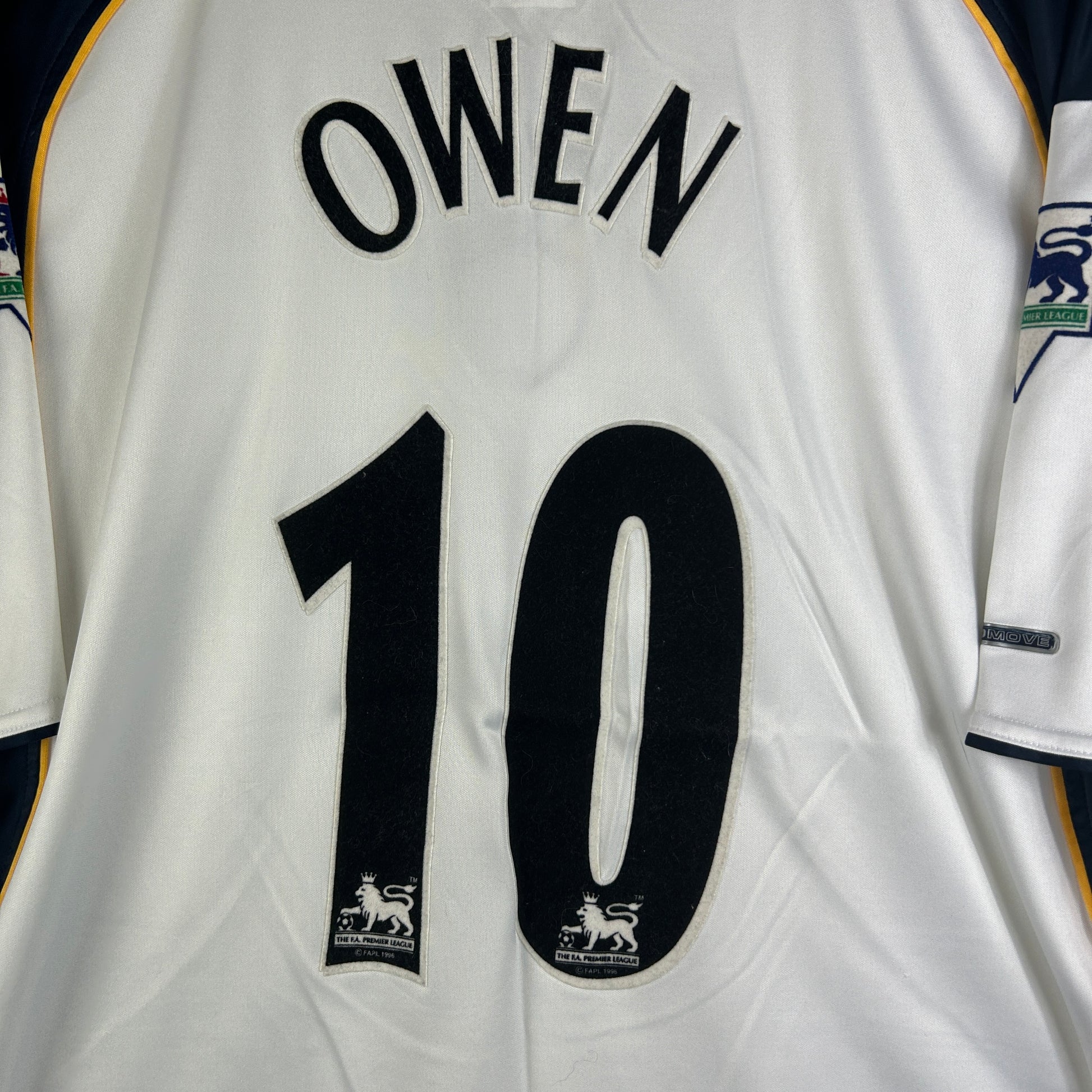 The Liverpool away shirt was worn in the 2001/2002 season, and the third shirt was worn in the 2002/2003 season. Owen 10 print.