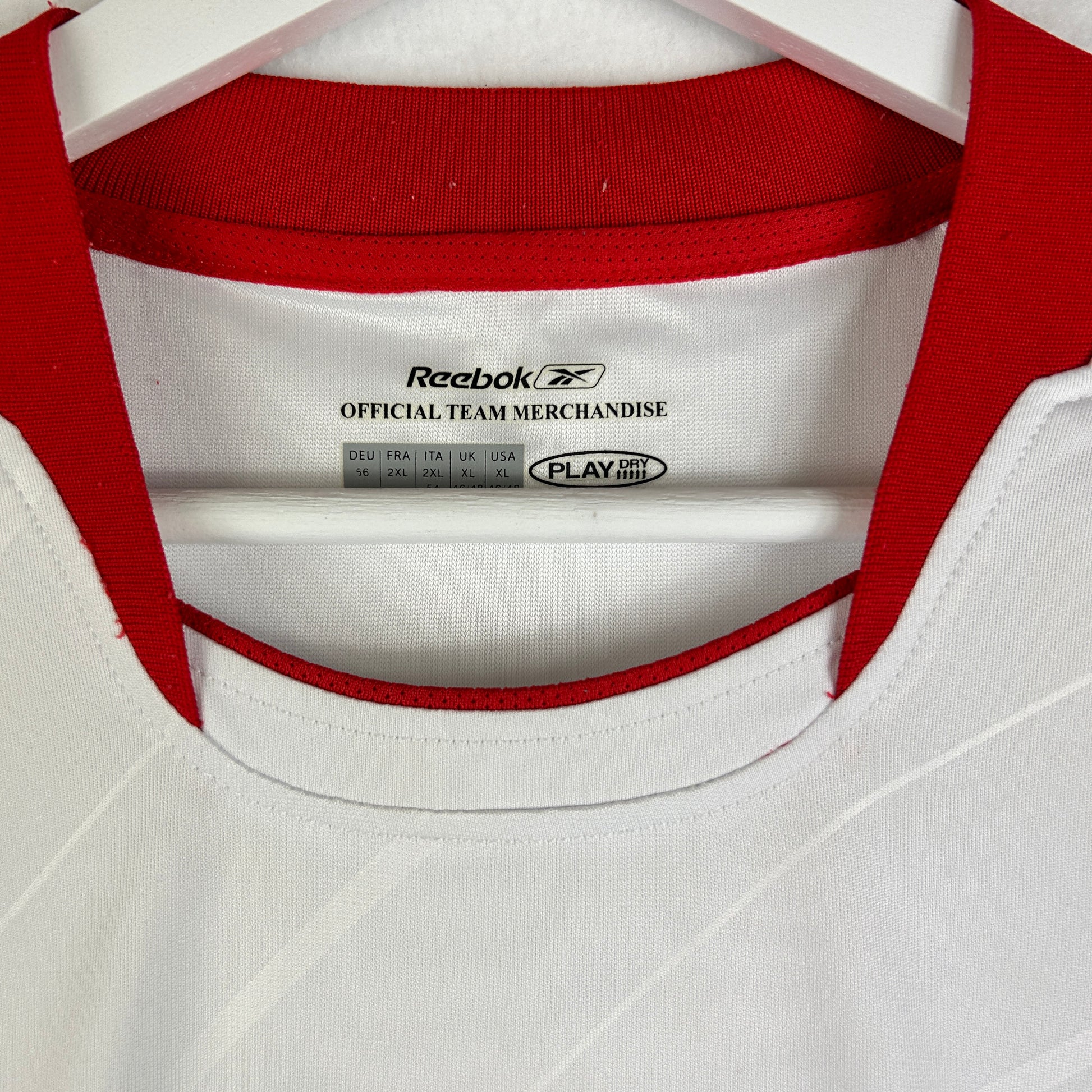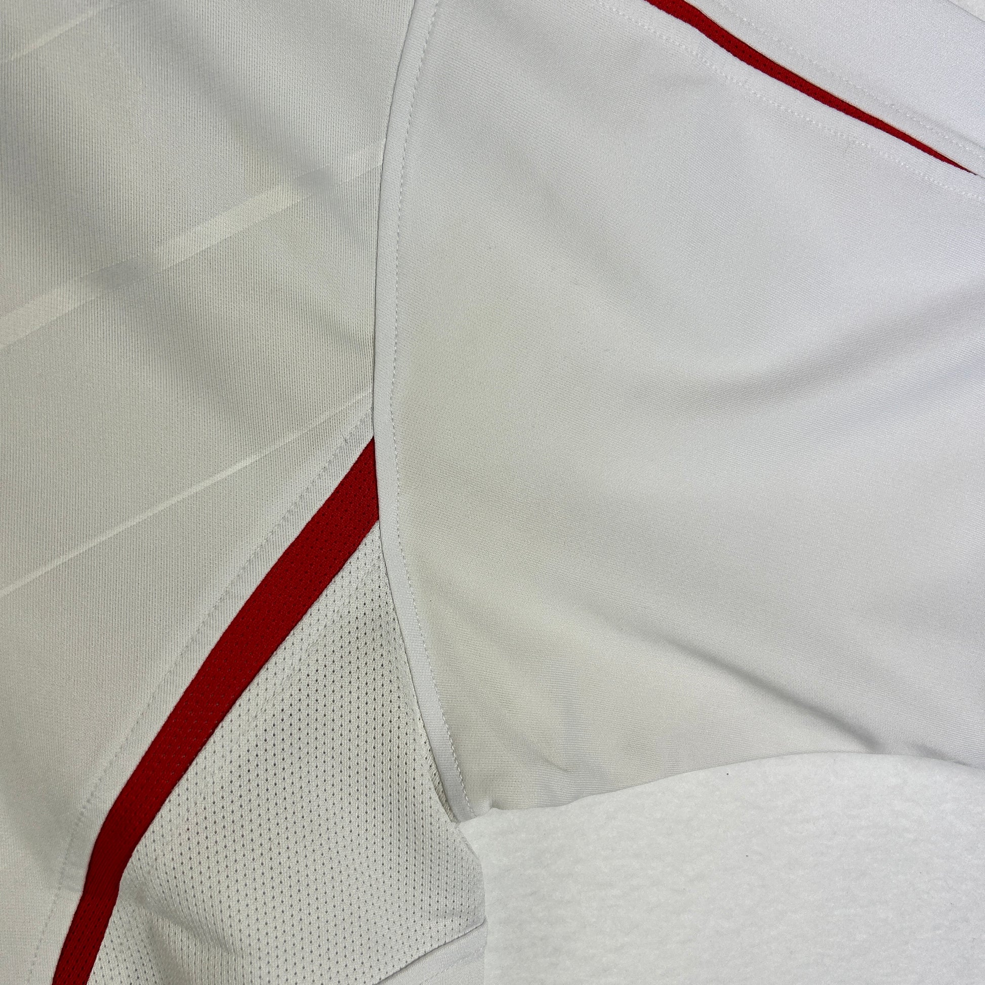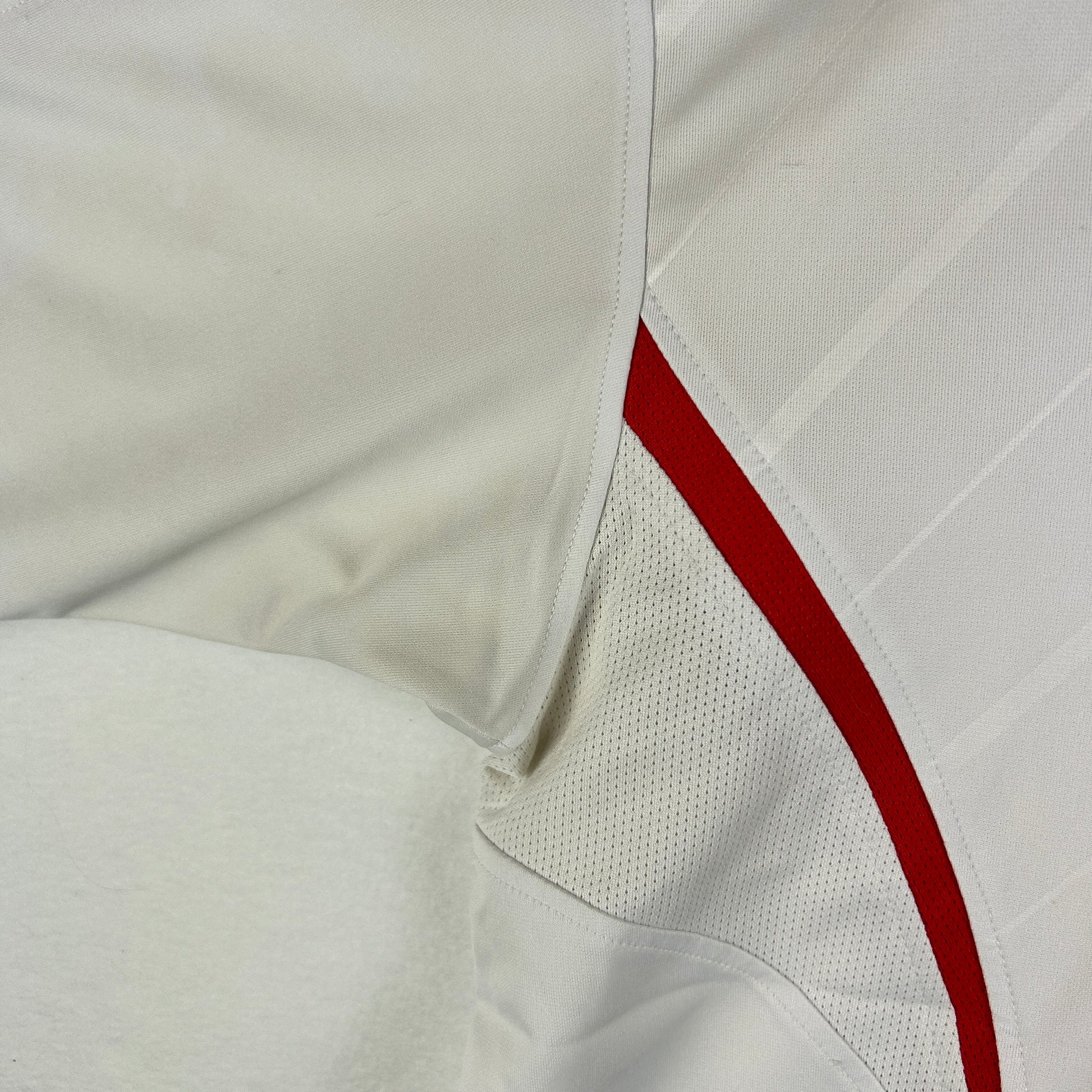 This was the last season of Liverpool and Reebok before they moved over to Adidas, This is a nice away shirt that is white with some red material in the design. The third shirt this season was a little more stand out but this is a good-looking shirt.