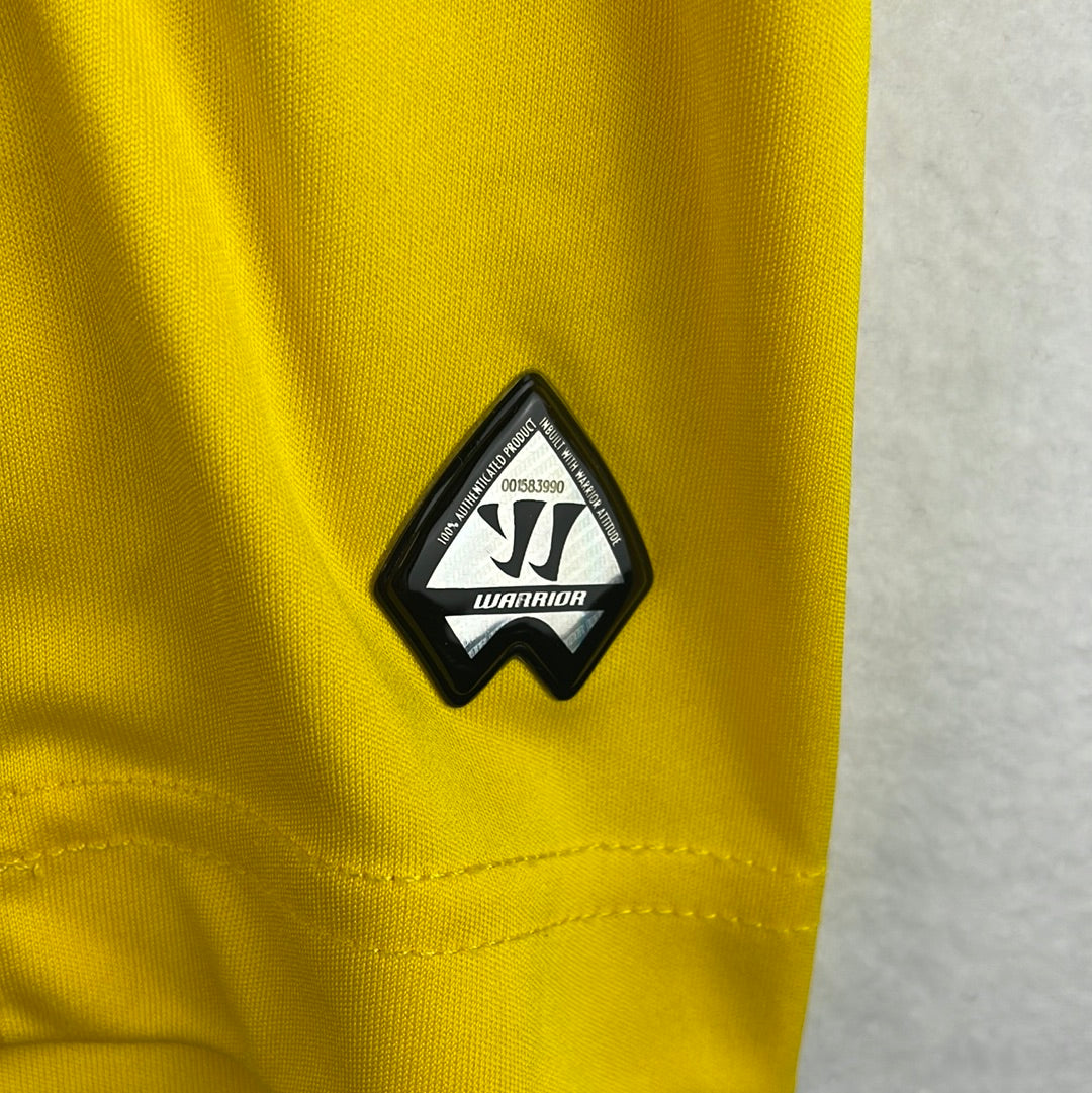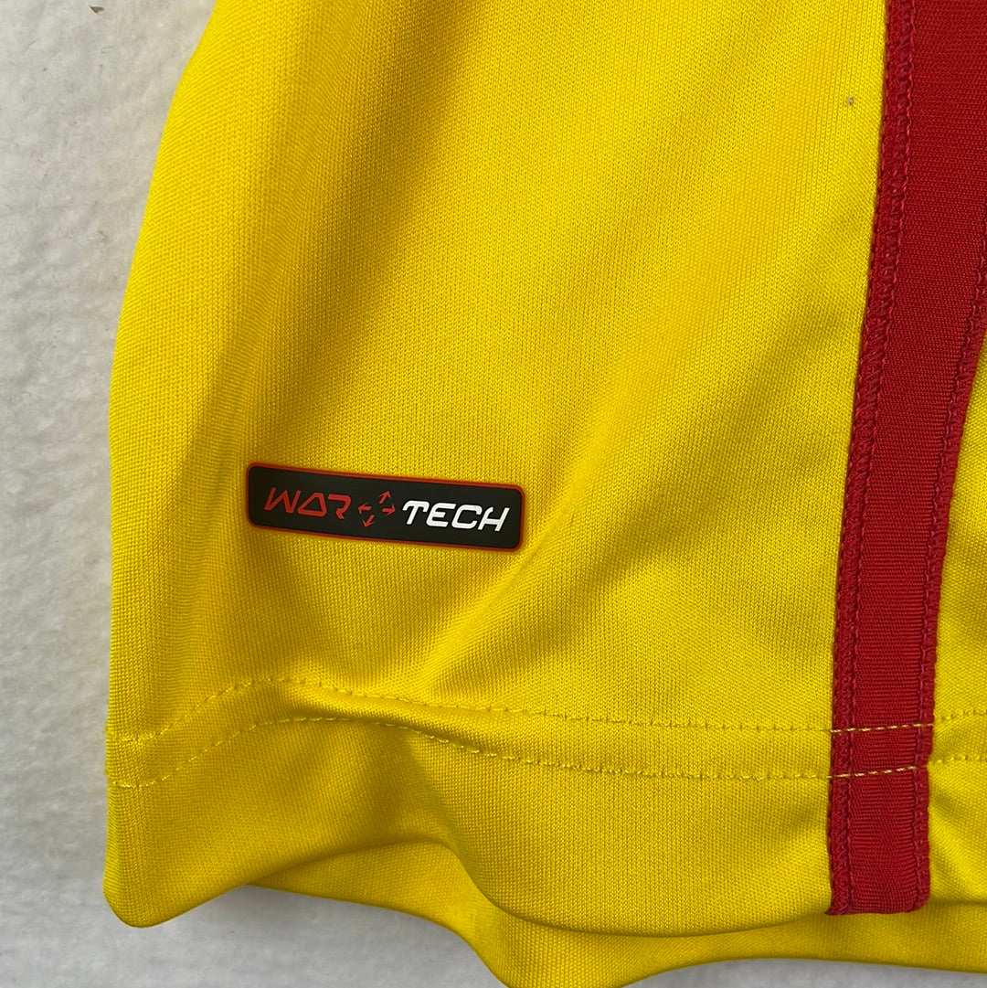 Shirt info: The away shirt from Warrior for the 2014/2015 season. A yellow shirt with red across the chest and down the sides.
