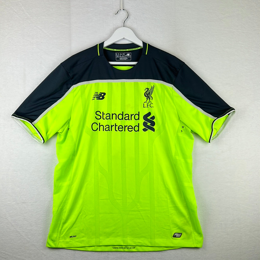 The toxic green Liverpool third shirt from the 2016/2017 season, long sleeve with Premier League patches.