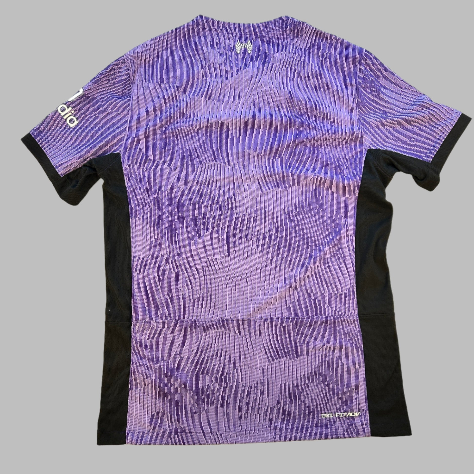 Shirt info: The third shirt for Liverpool in the 22/23 season. This is the dri-fir adv level of the shirt, which is closer to the player's shirt with the material and heat pressed badge and Nike logo. This is a cool shirt that is very memorable for Liverpool.