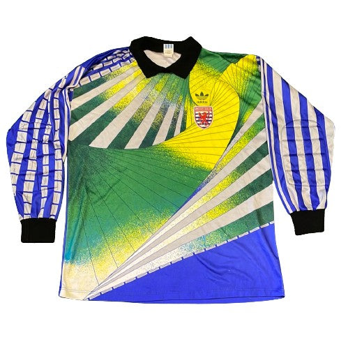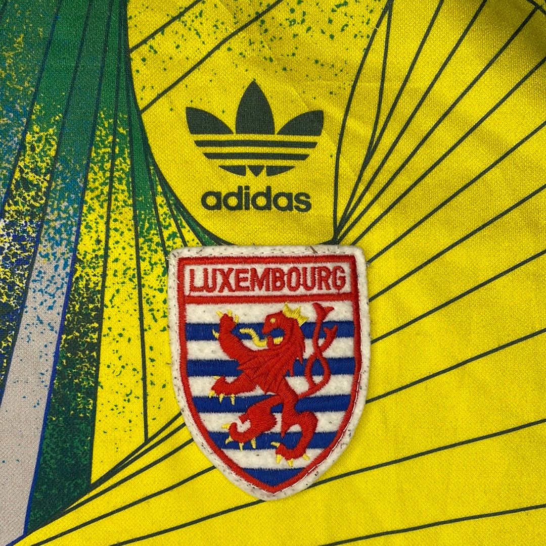 Shirt info: A very rare Luxembourg goalkeeper's shirt. This was used by the team in 1991-1992 and 1993. It is a standard Adidas template from the time with a Luxmeborg badge sewn on as was common for small teams in the 1990s. I would assume this was either done for the player or match worn as these would not have been produced and sold for Luxembourg at the time.
