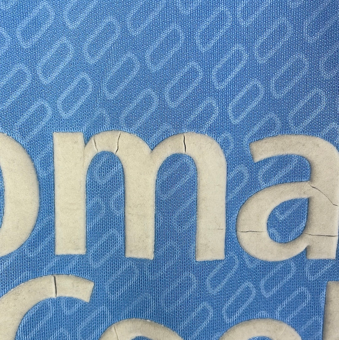 Shirt info: The home shirt from 2004/2005 and 2005/2006 for Manchester City. A sky blue shirt with patterning in the material.