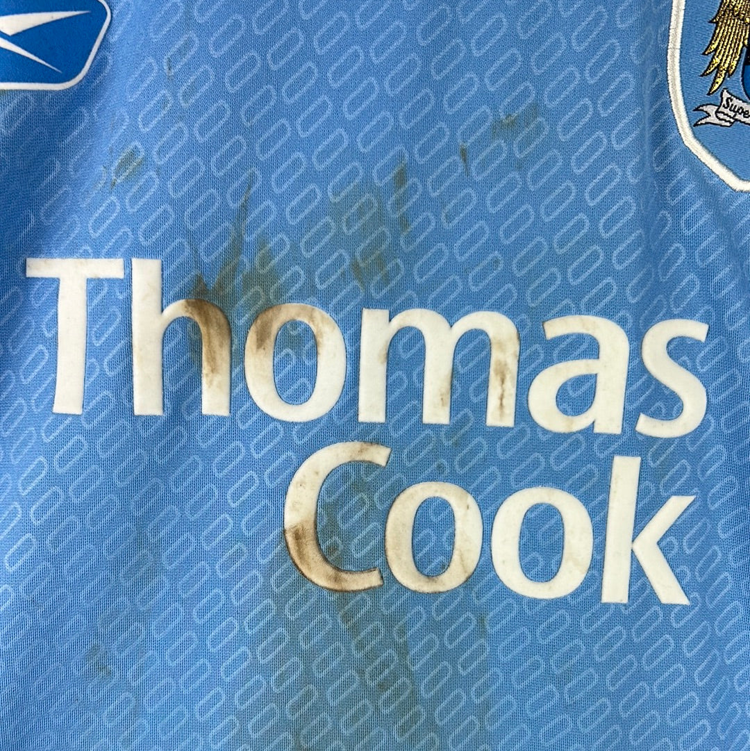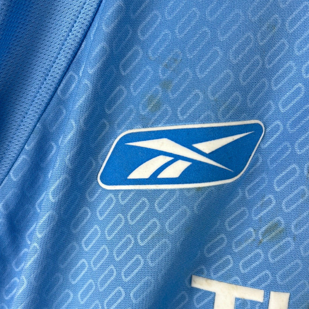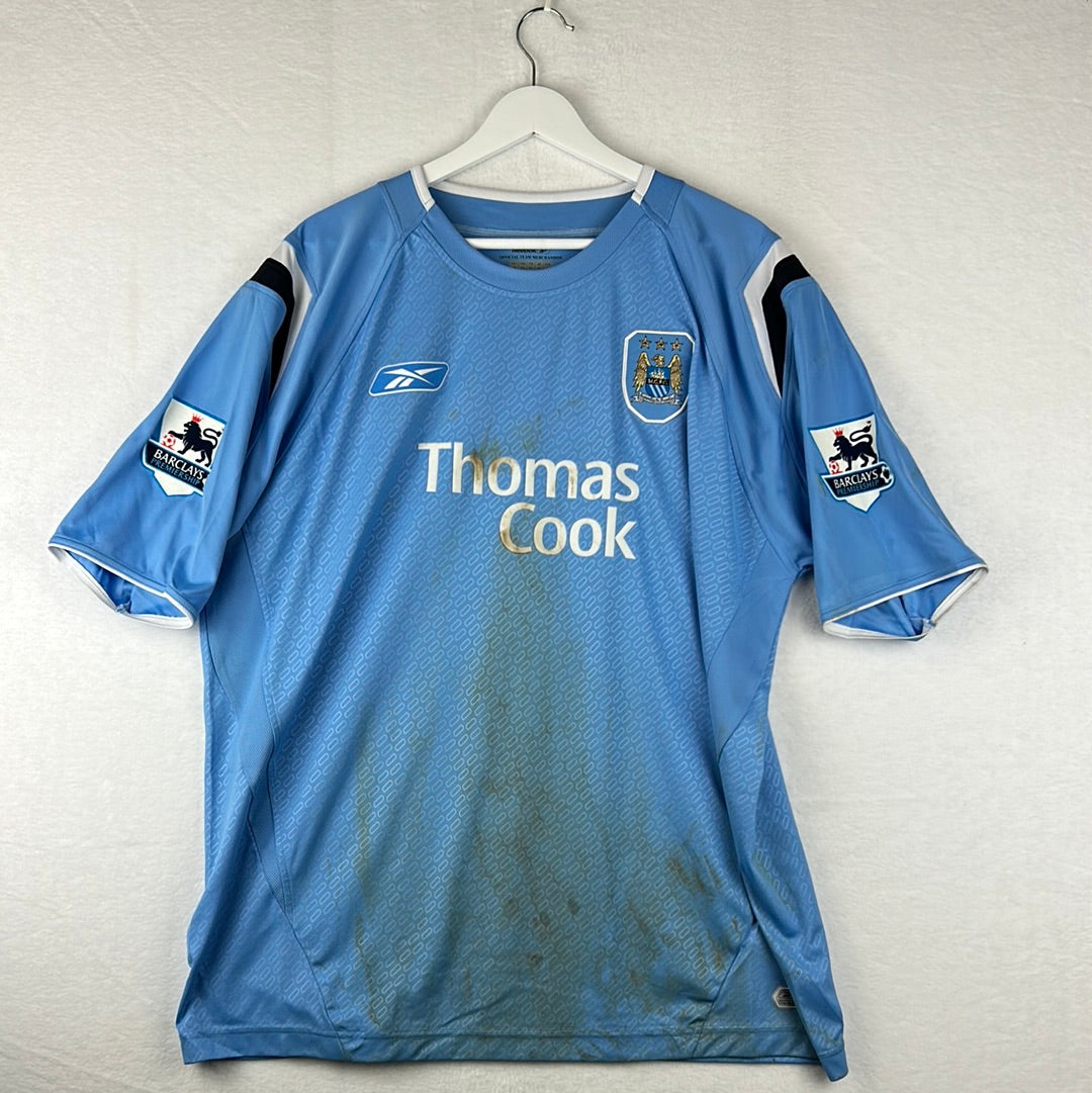 Shirt info: The home shirt for Manchester City in the 2004/2005 & 2005/2006 seasons. Made by Reebok and sponsored by Thomas Cook.