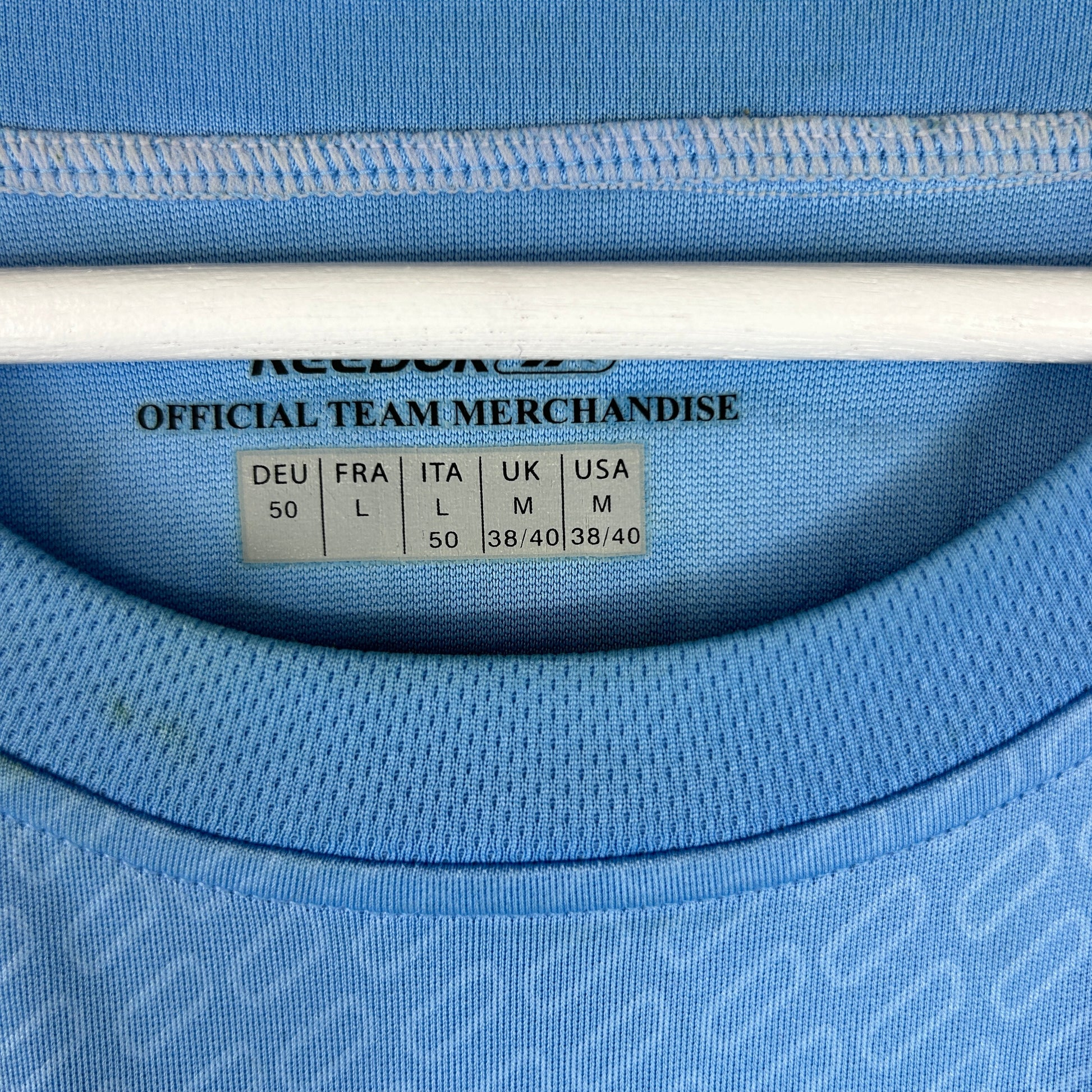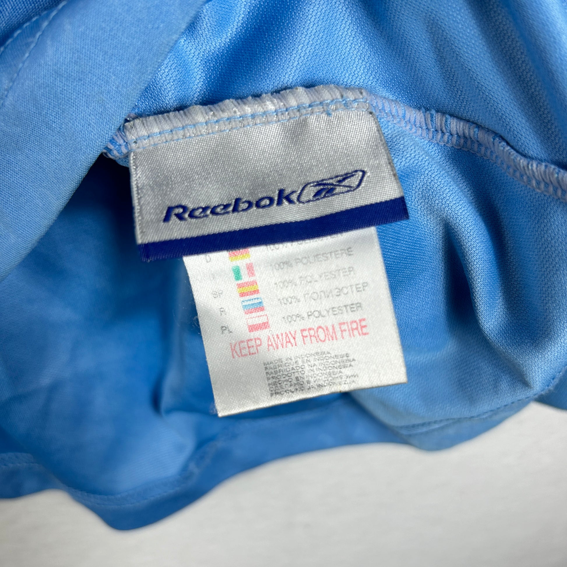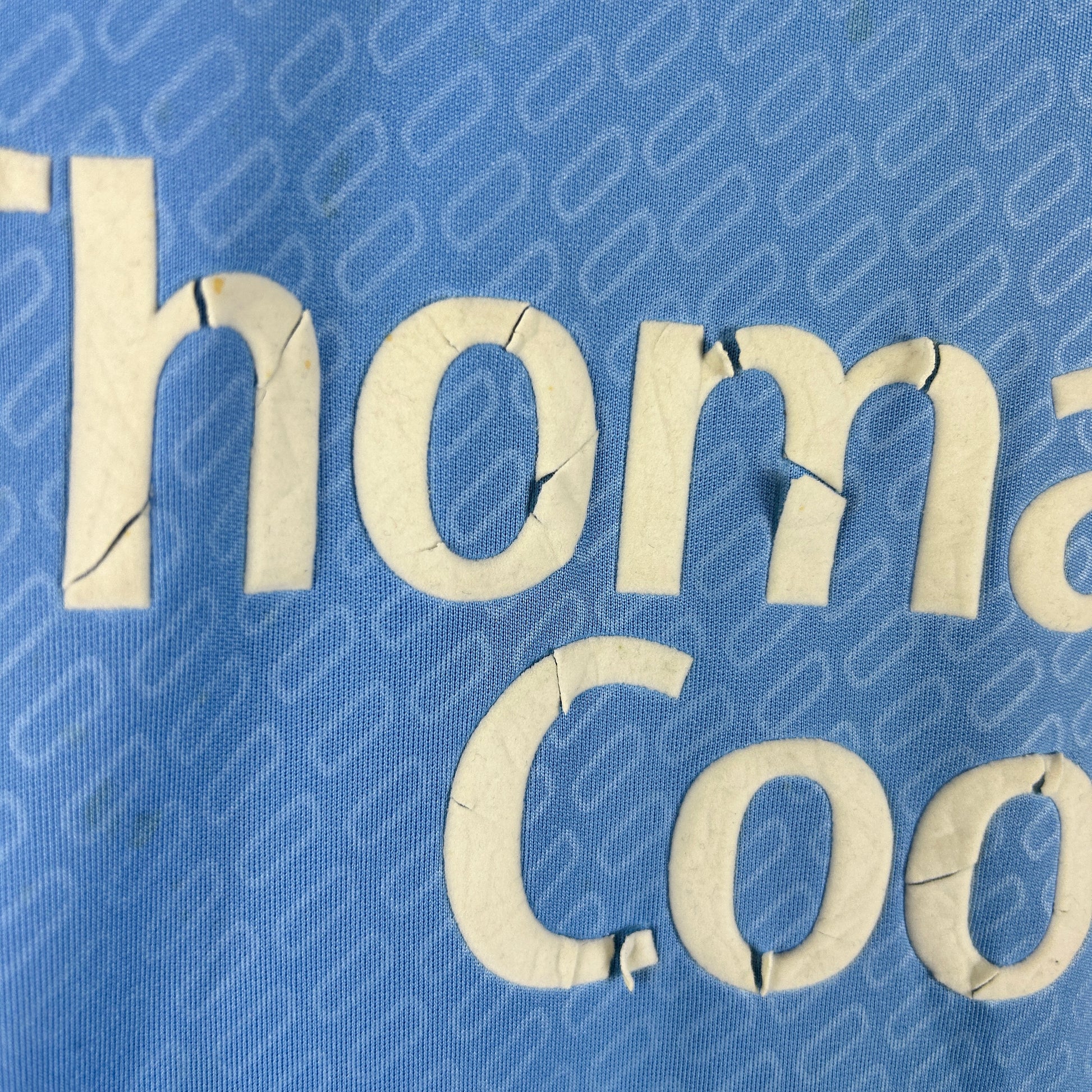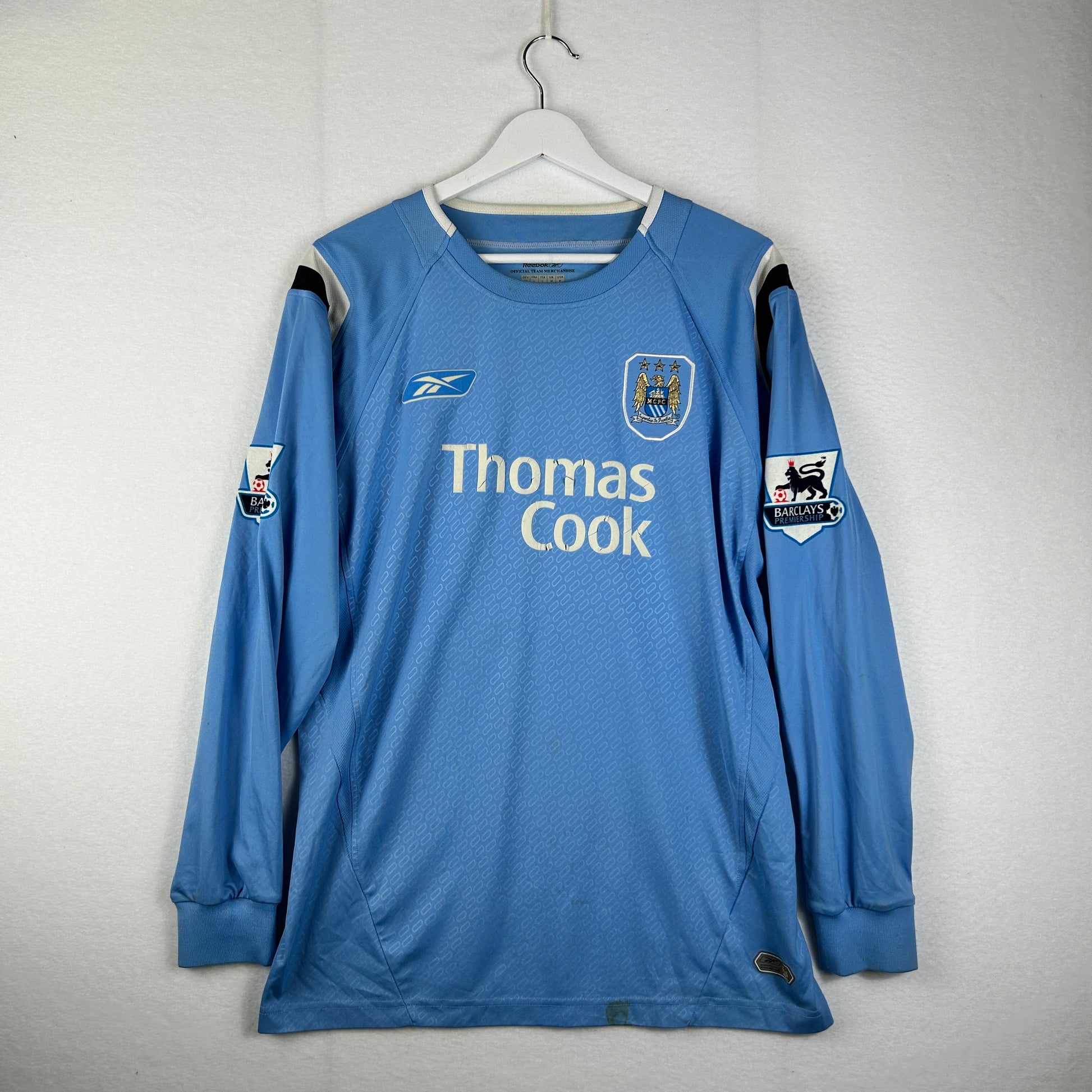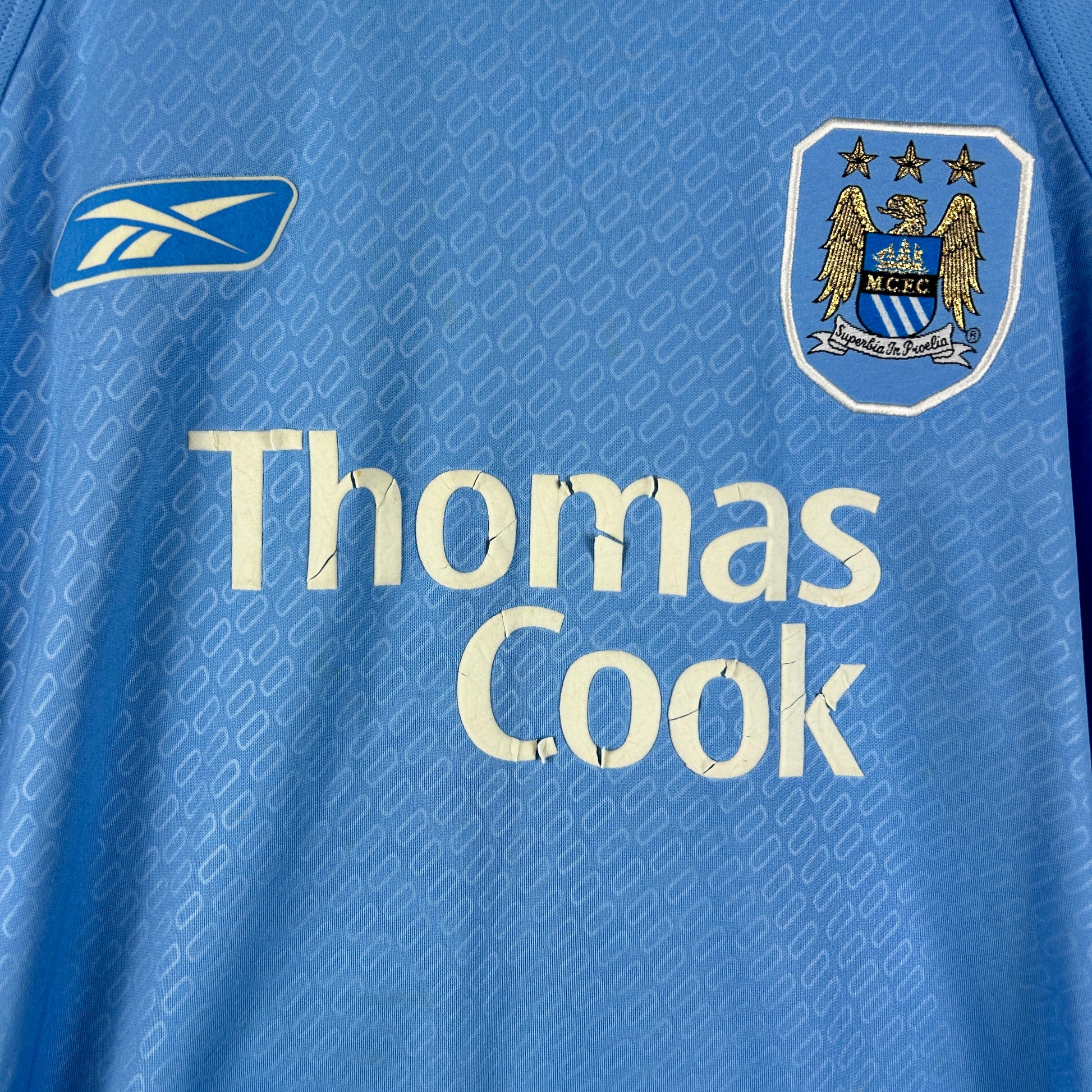 Shirt info: The home shirt for Manchester City in the 2004/2005 & 2005/2006 seasons. Made by Reebok and sponsored by Thomas Cook.