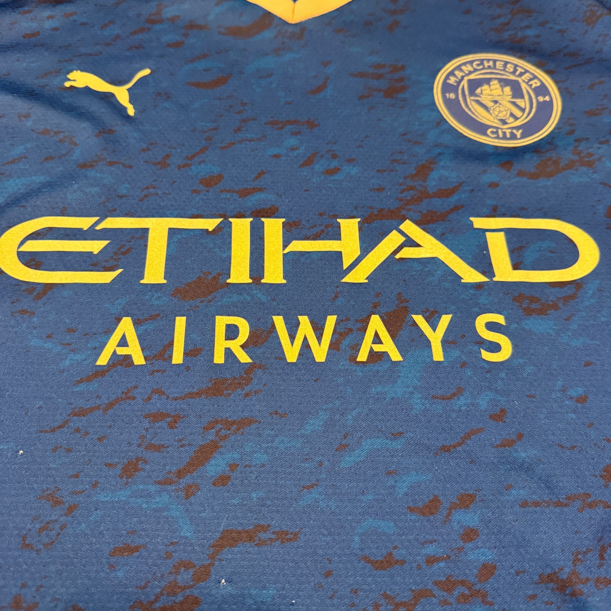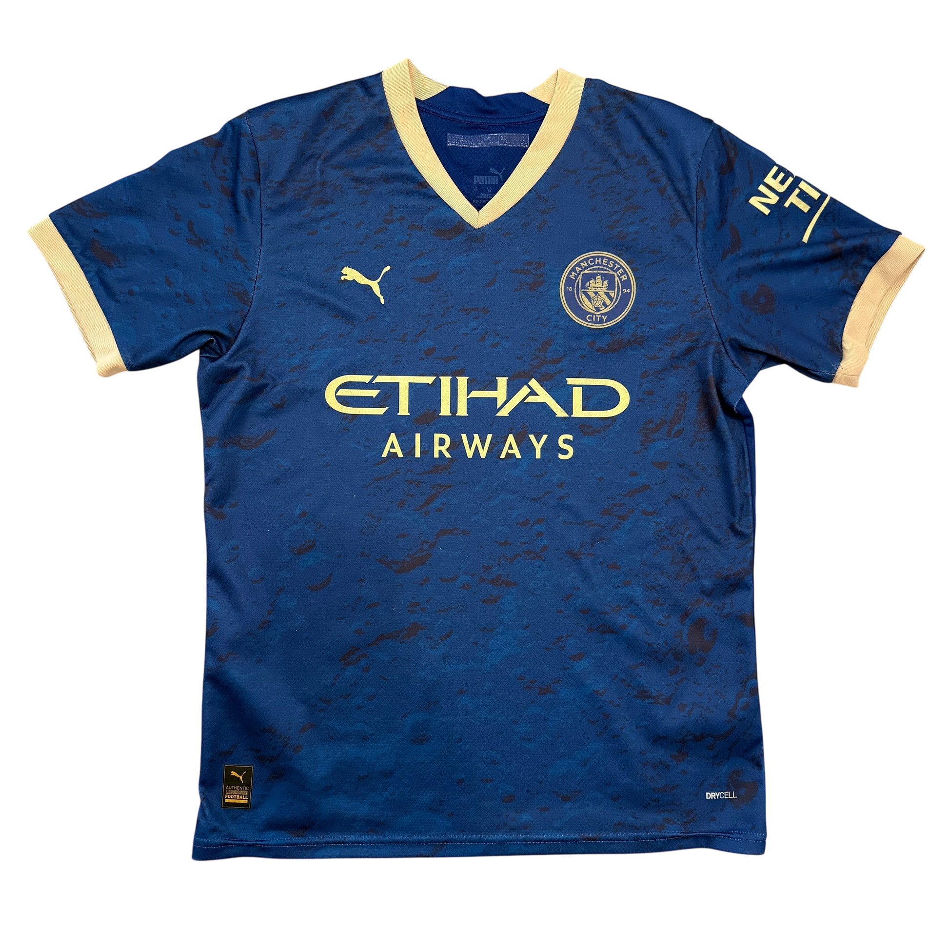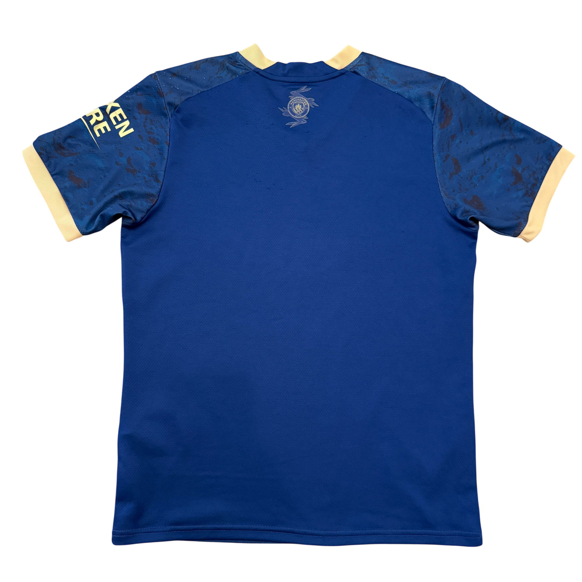 Shirt info: The Chinese New Year pre-match shirt for Manchester City in the 2022/2023 season. This was a very quick-selling shirt with a moon-themed design. It is a dark blue, unlike City's home shirt. It has gold detailing on the shirt, sponsor and badges. This is probably the best pre-match Manchester City Shirts we've seen.