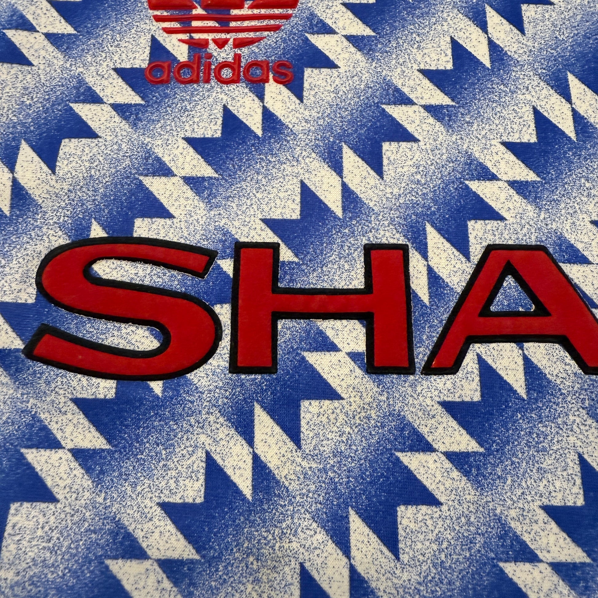 Shirt info: The iconic away shirt for the 1990/1991 and the 1991/1992 season. One of the best-ever Manchester United shirts. This has been re-imagined by Adidas in recent years and the pattern has been added as a touch to some of the more modern shirts.