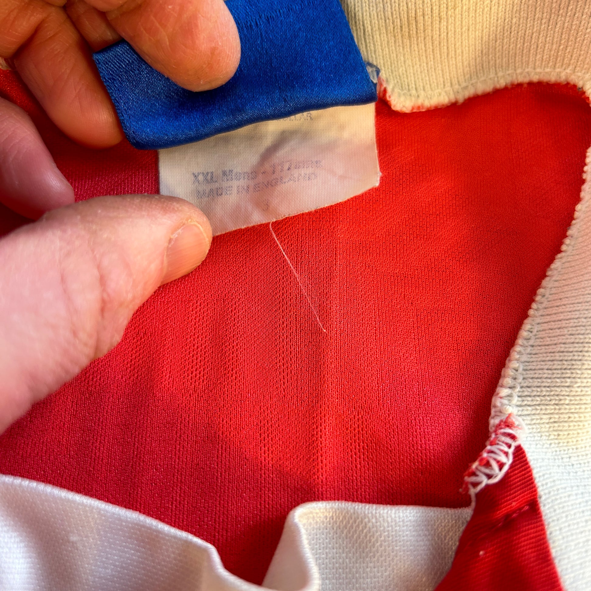 Condition Details: The shirt is in good condition. There are a few bobbles on the front. The laces are the original and are still in good condition.
