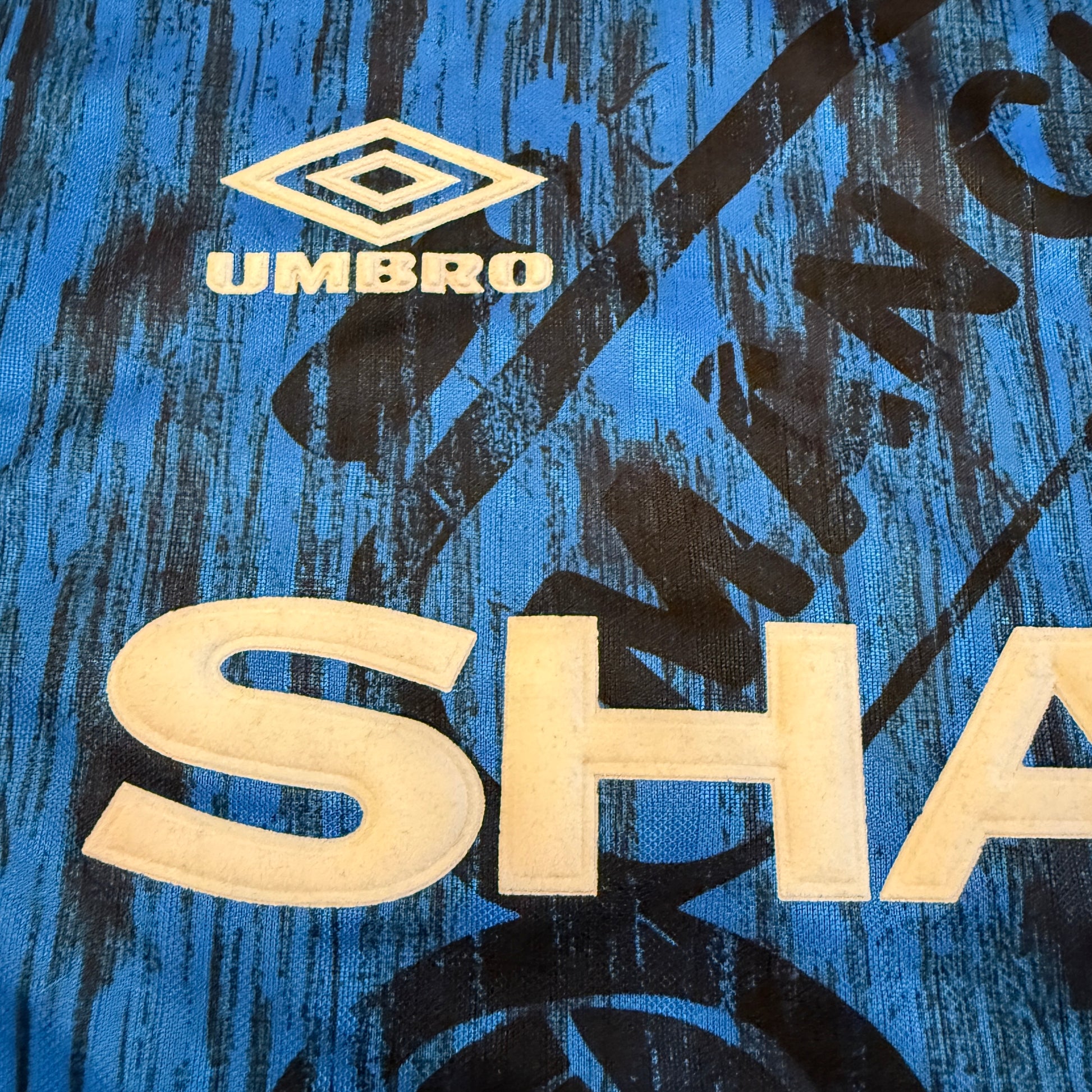 Shirt info: One of my all-time favourite Manchester United shirts, I love the big United badge on the design. Used as the away shirt in the 1992/1993 season only.