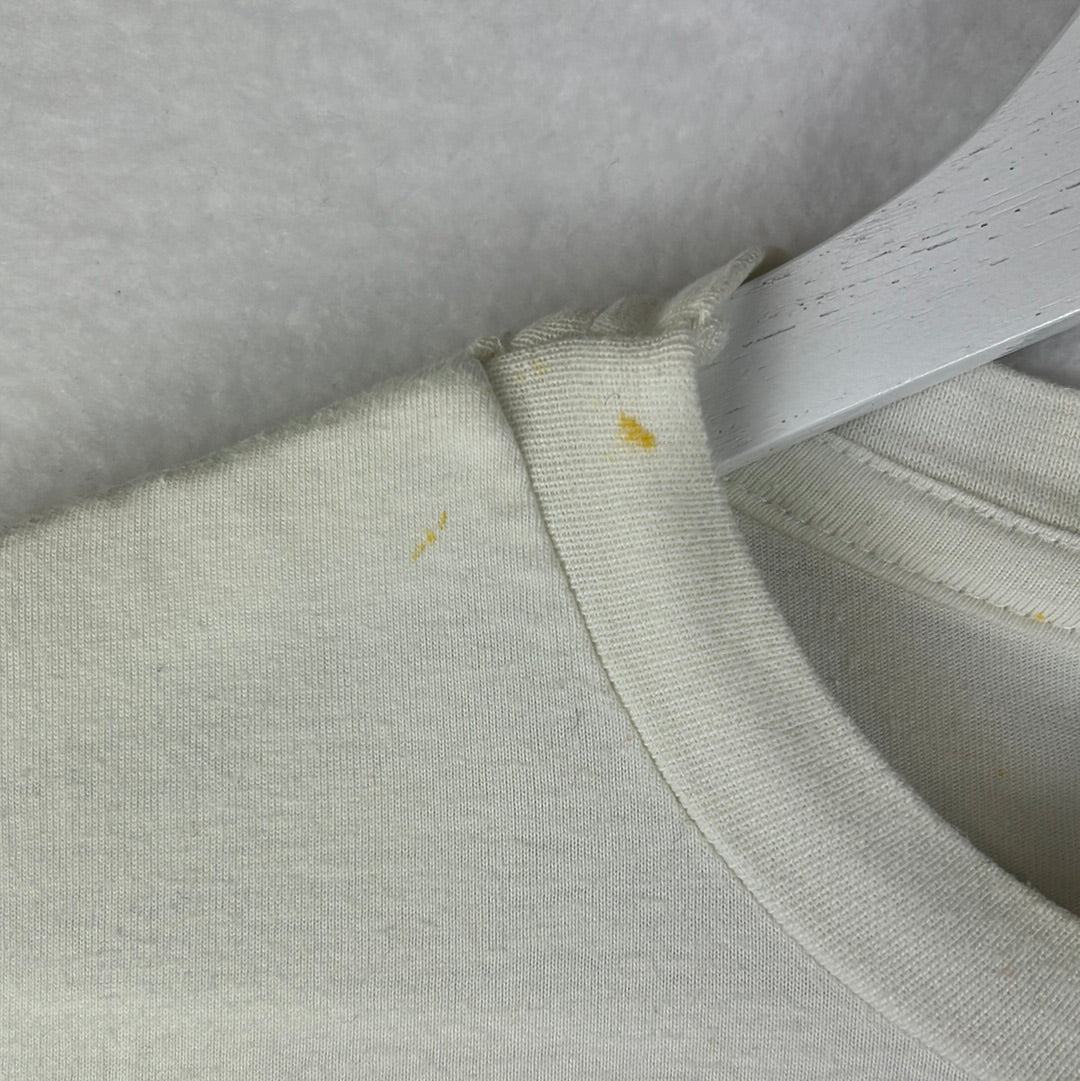 Condition Details: The shirt has some fading to the print which adds to the vintage look. There is an odd mark on the material but no pulls or holes.