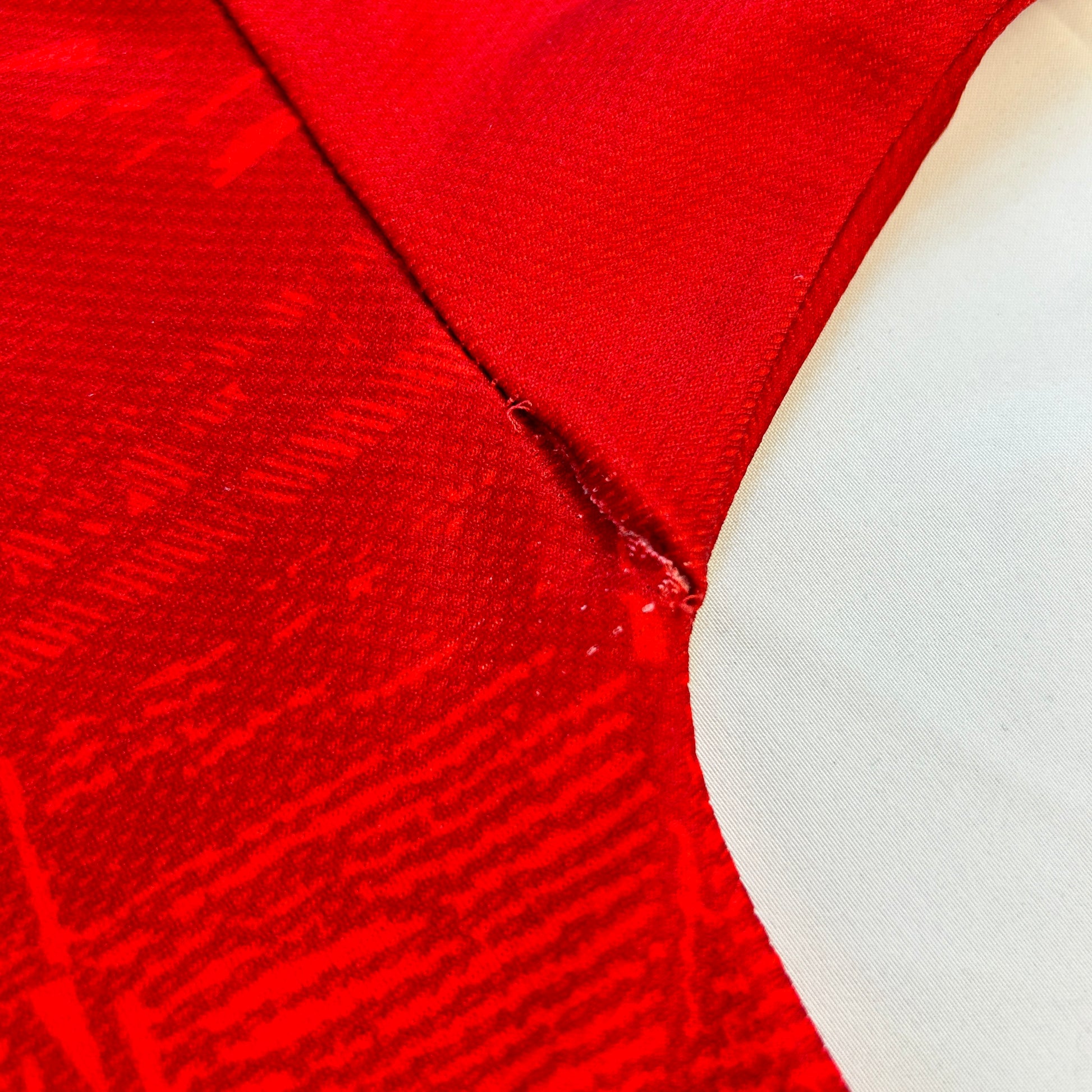 Shirt info: The home shirt for 2 seasons covering 1994/1995 and 1995/1995. This shirt featured Old Trafford as a background to the material. This is one of my favourite Manchester United home shirts.