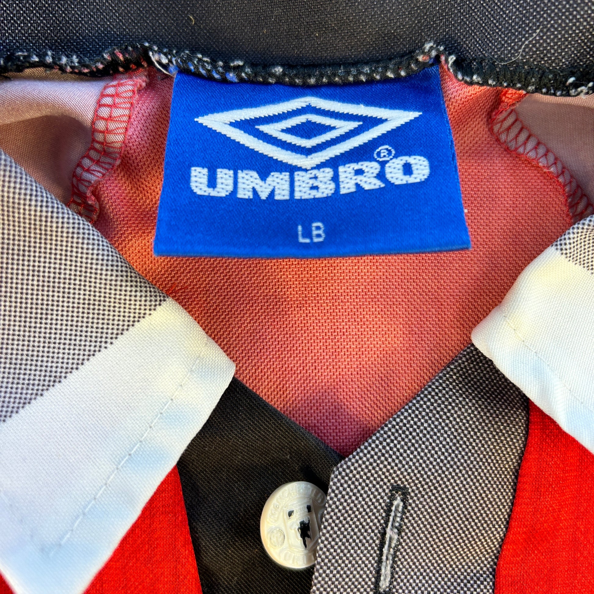Shirt info: The home shirt for the 1995/1996 double-winning season. The shirt does not have the embroidery on the lower front.