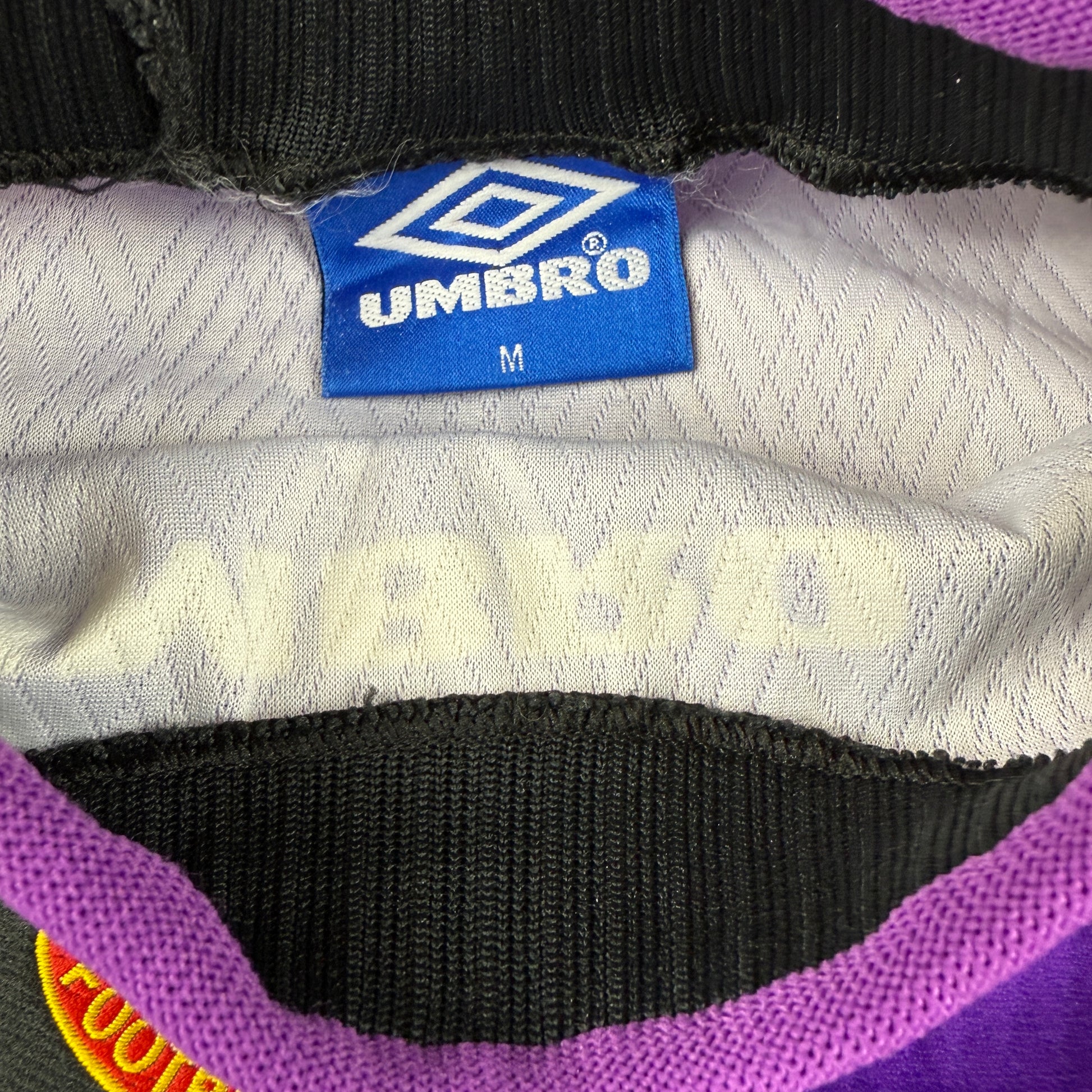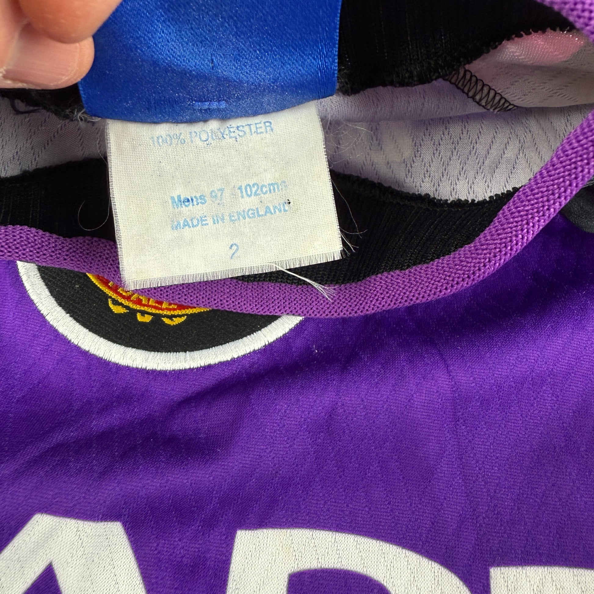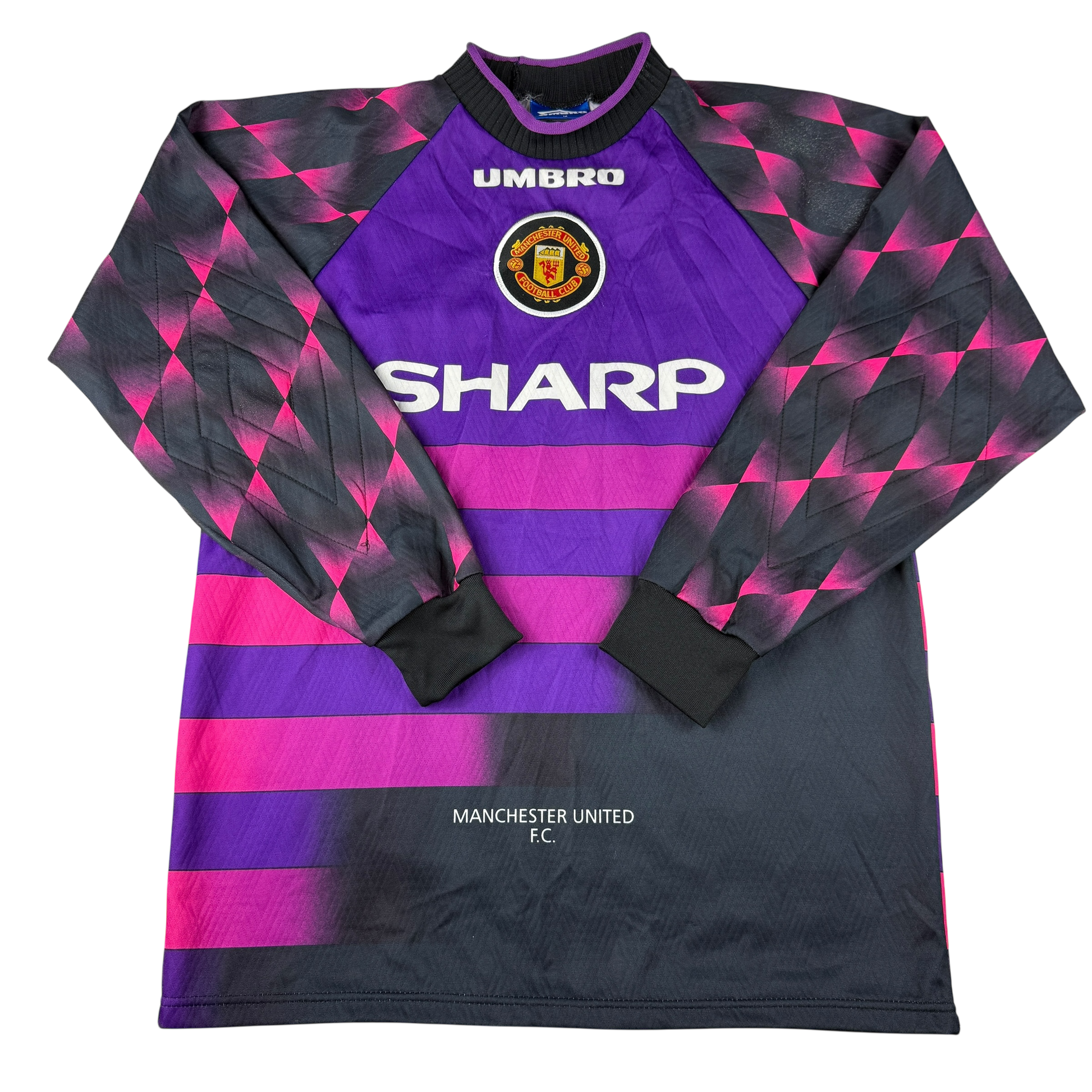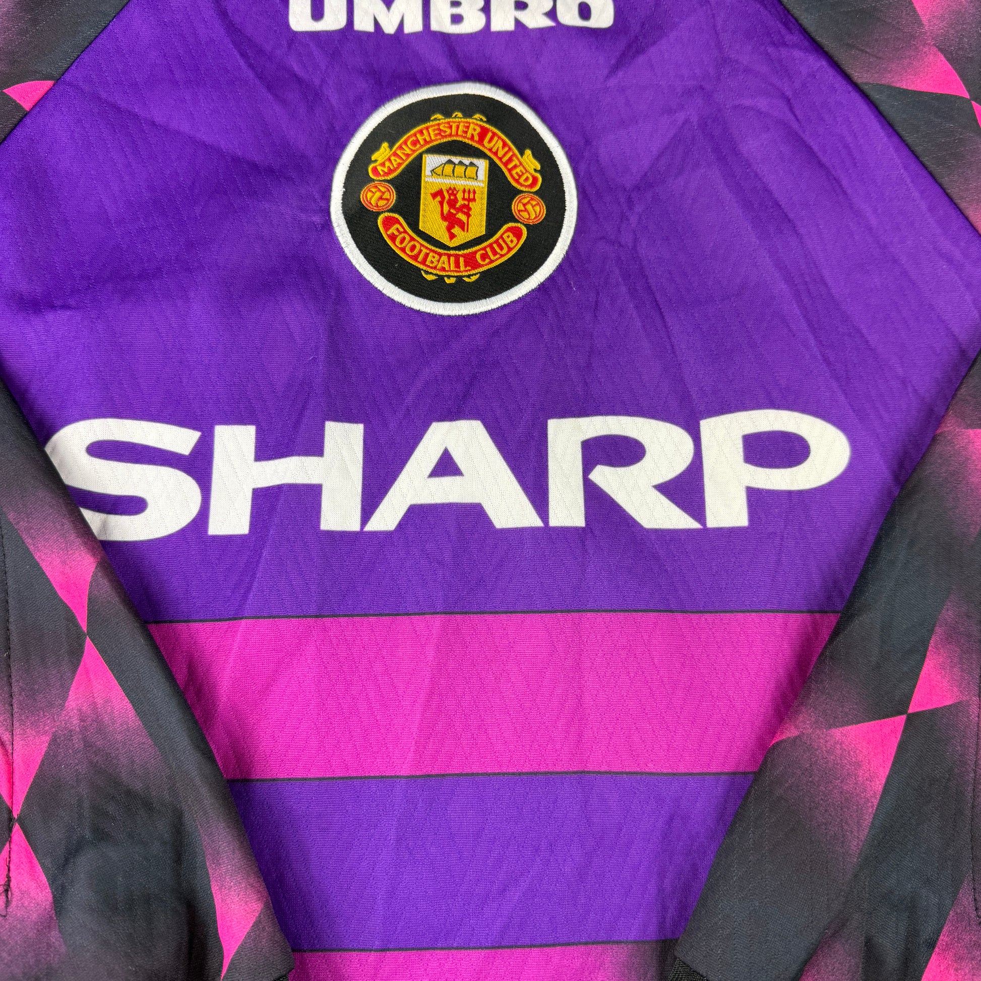 Shirt info: A classic Manchester United goalkeeper shirt from the 1996/1997 season. This is a rare purple goalkeeper shirt that does not come up for sale very often! This is the first one I have had in stock in 18 months.