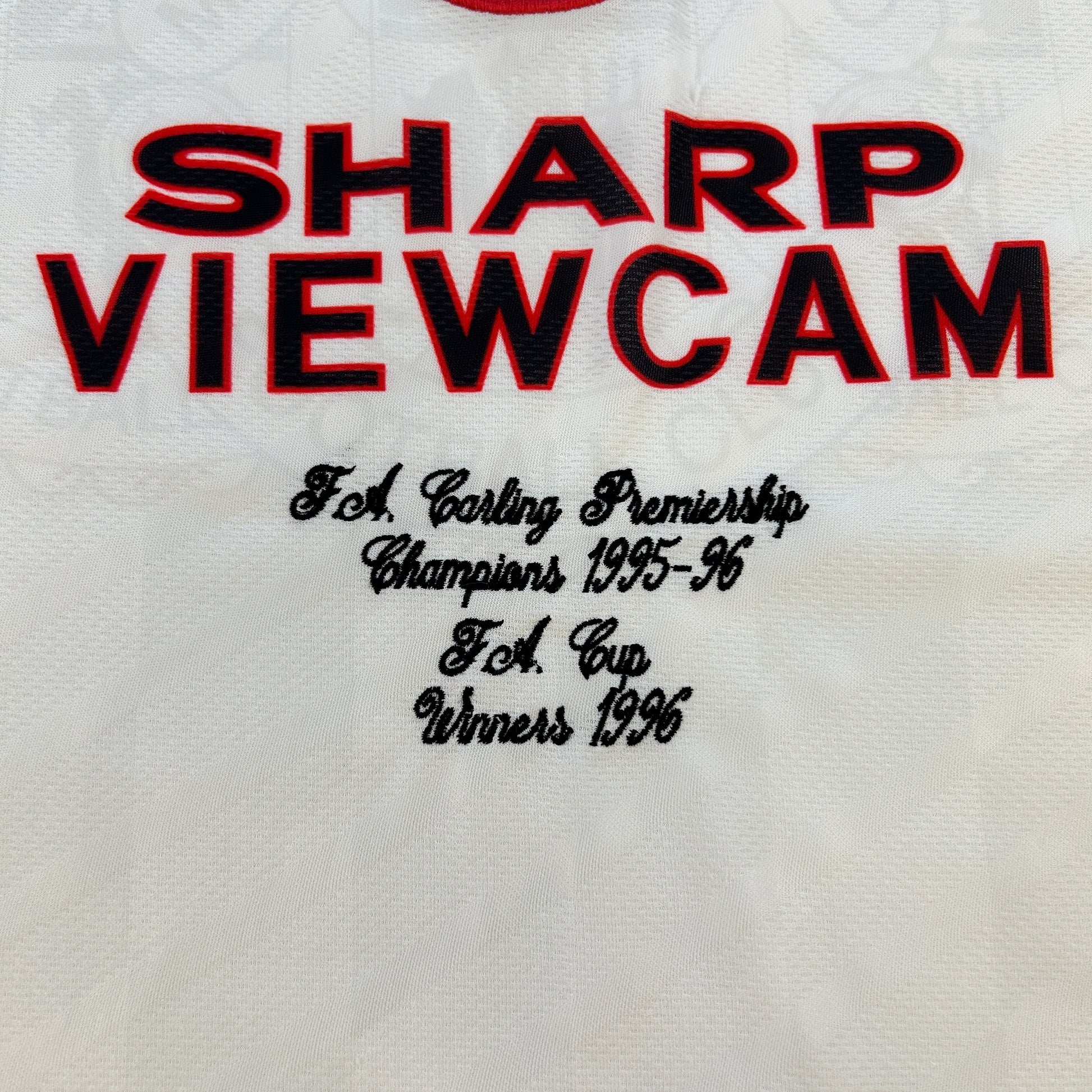 1996/1997 away shirt with the Champions & FA Cup winners embroidery on the front. These were done in the Megastore then and are more commonly found on the home shirt.