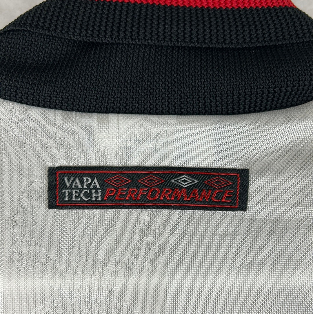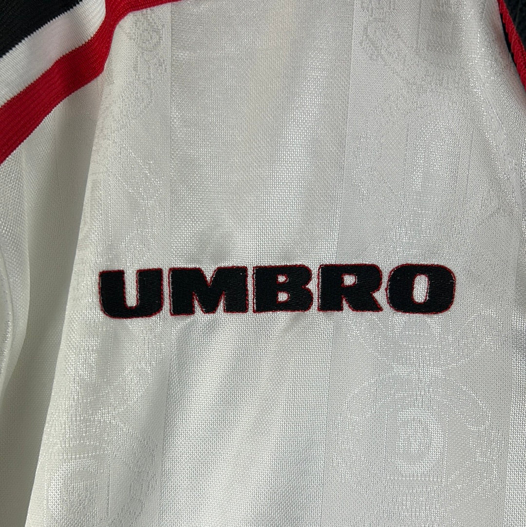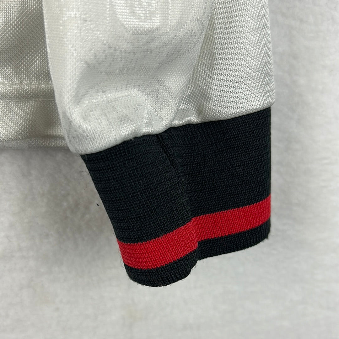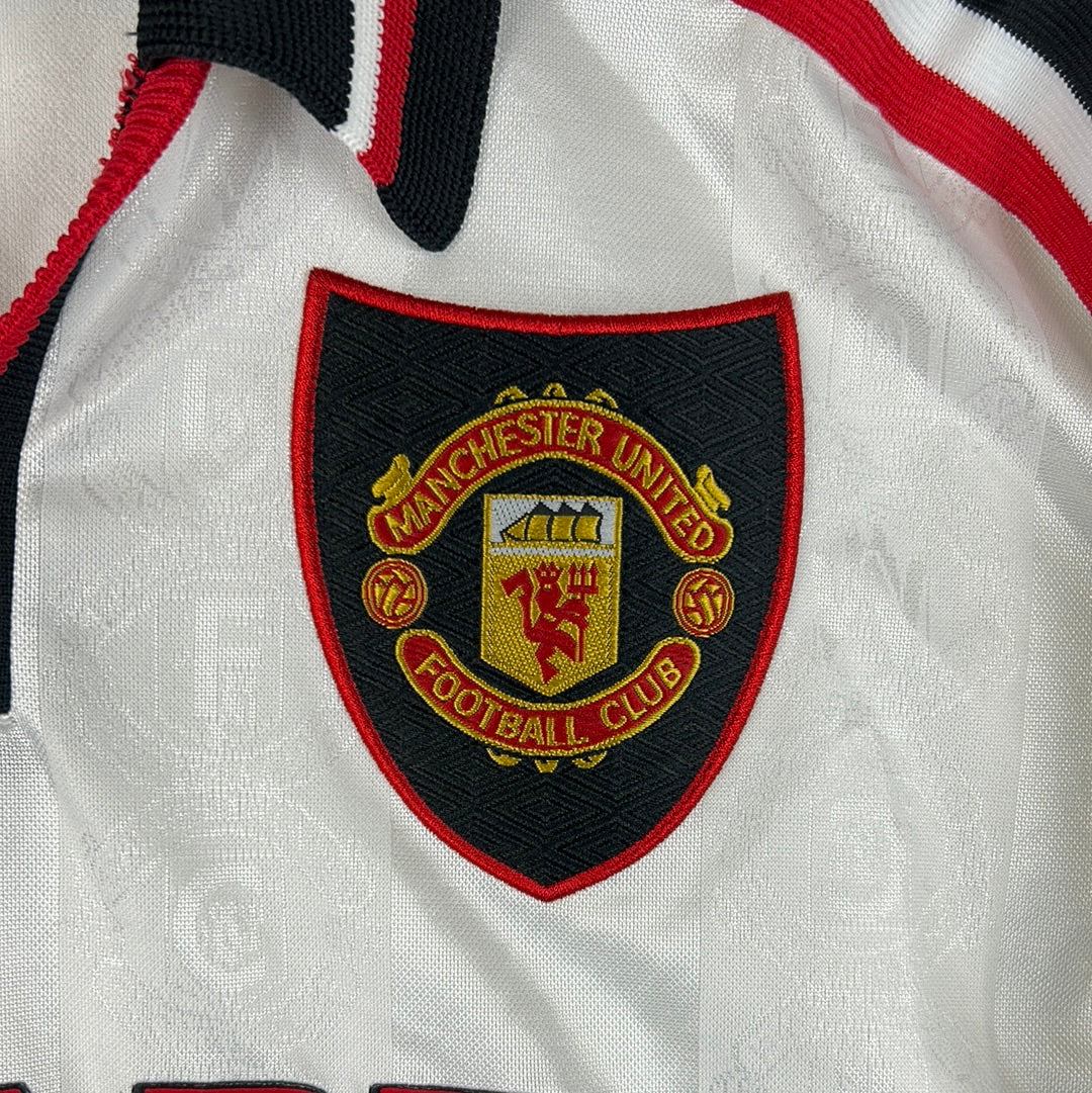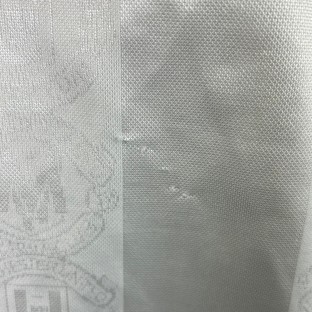 Shirt info: The white away shirt from the 1998-1999 season. This is the season where Manchester United won the treble. A rare long sleeve version of this shirt.