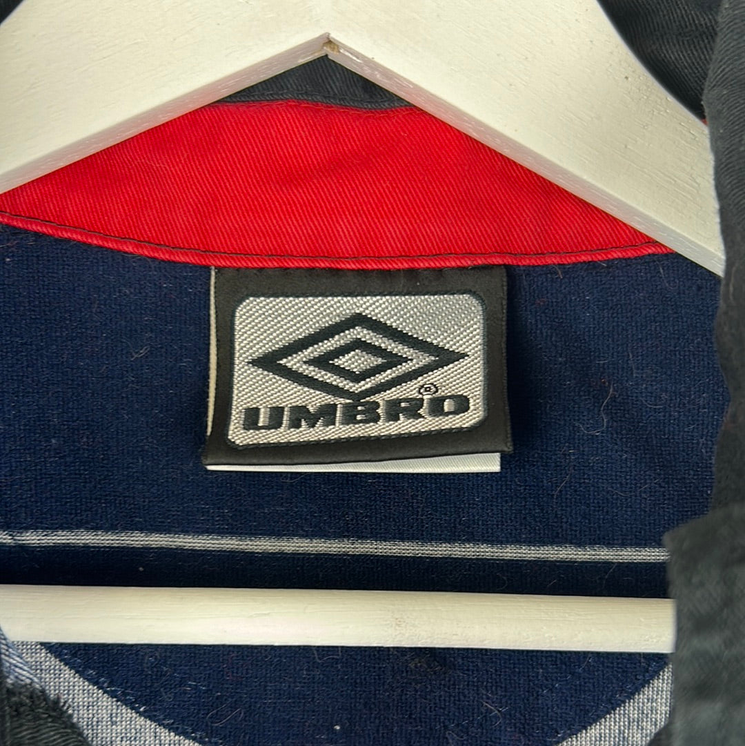 Shirt info: The VAPA TECH Manchester United away shirt for 1999-2000. A thick woollen-type shirt that did not last long as a material type! This was quite a unique shirt in a material that feels like football shirts should never have been made from! The shirt feels heavy and attracts fluff like crazy. The material is in good condition.
