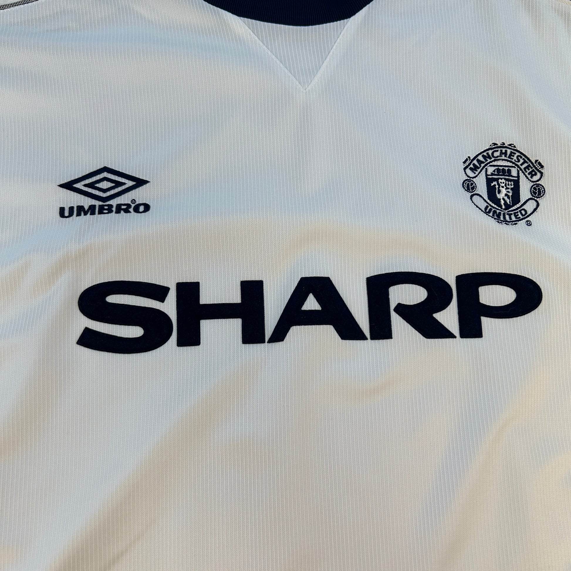 Shirt info: The third kit for the 1999/2000 season. This is the last year of the SHARP sponsorship at Manchester United. This shirt was also used as the away kit in the 2000/2001 season with the new Vodafone sponsorship.