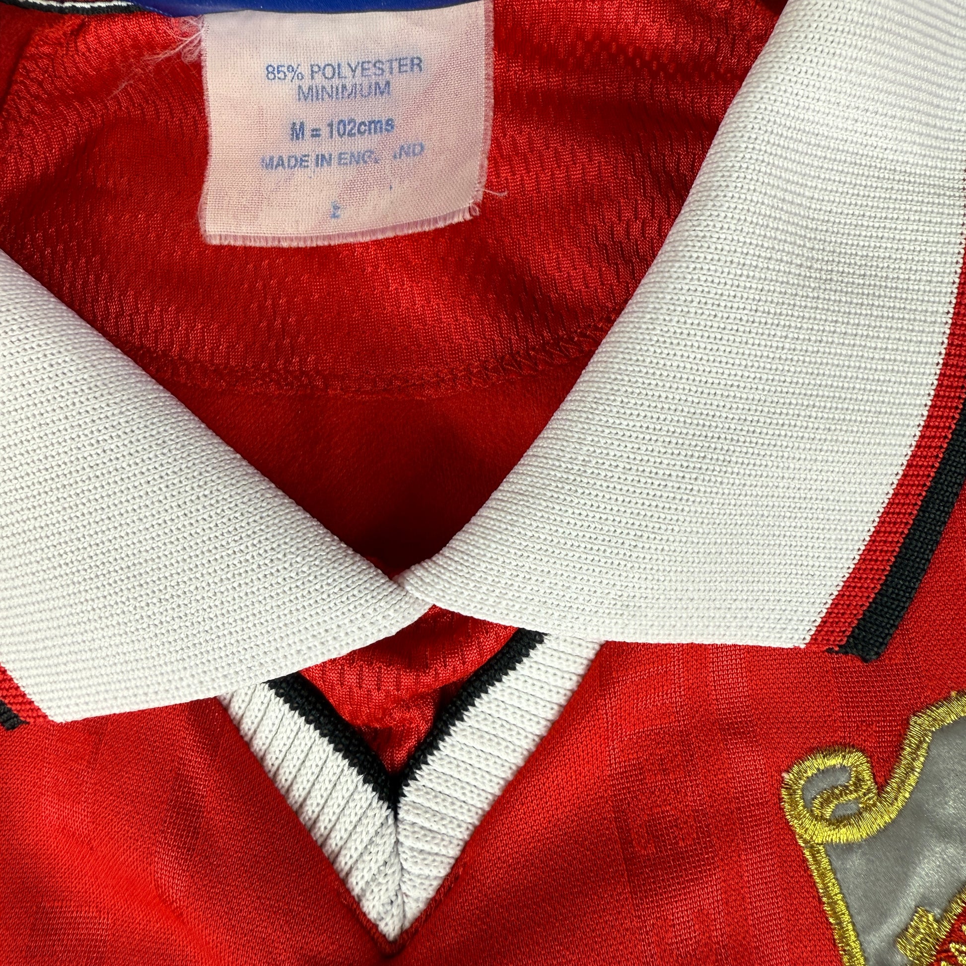 Shirt info: The shirt was worn for the European matches in the 1998/1999 season. It was made as the Umbro sleeves of the standard home shirt were outside UEFA's rules on advertising, as they showed the logo too many times.