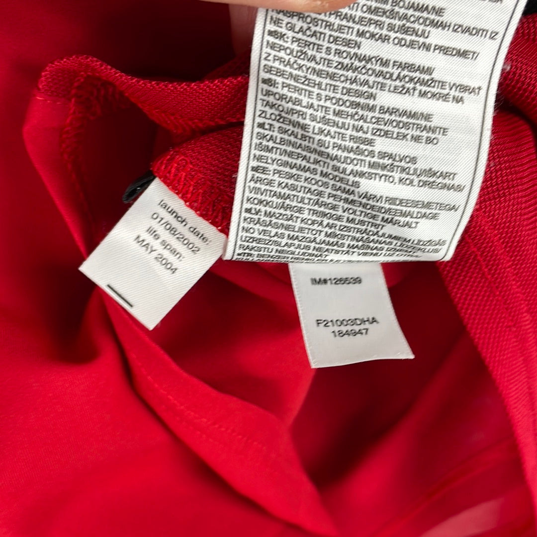 Shirt info: This home shirt was used in the 2002/2003 season and the 2003/2004 season. Red with a black trim design. The fit is similar to the 90s shirts with the baggy style still very common.
