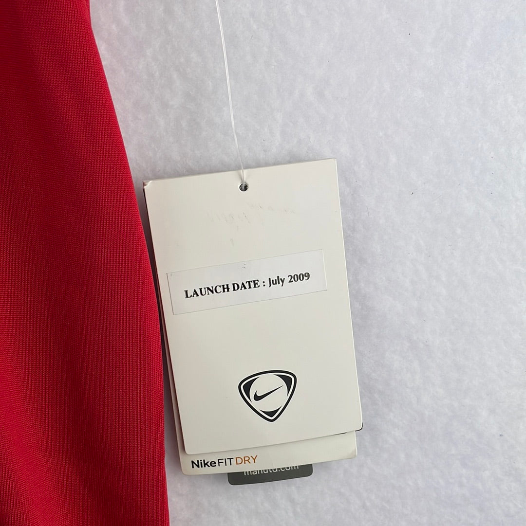 Shirt info: The red home shirt from the 2009/2010 season. This shirt was designed like the original United shirts that featured a red v on a white shirt. This shirt was not initially well received but I like it!