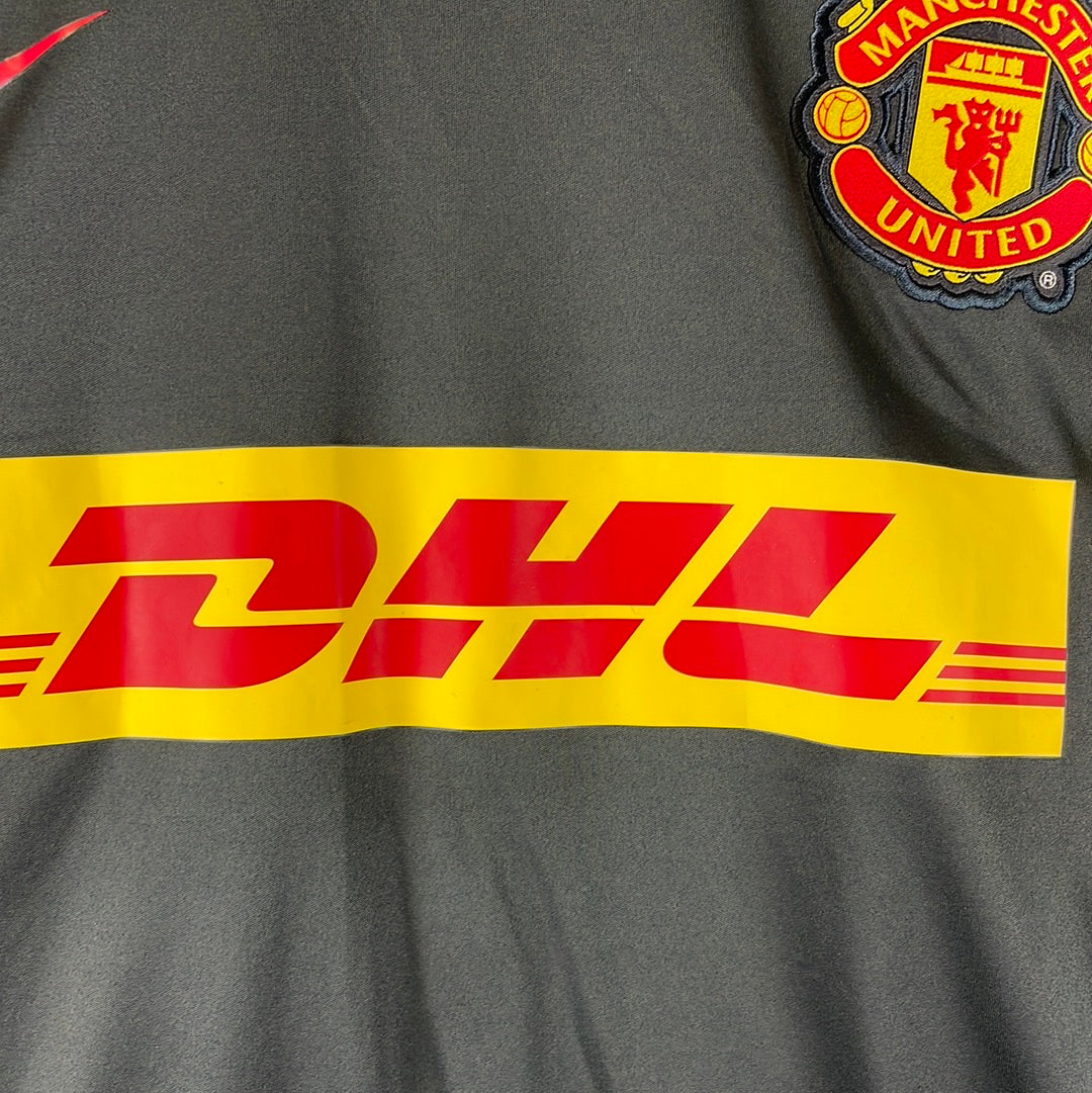 Shirt info: A black training shirt from 2011. This has the DHL sponsorship printed on the front. This was the first season of DHL sponsoring Manchester United training wear.