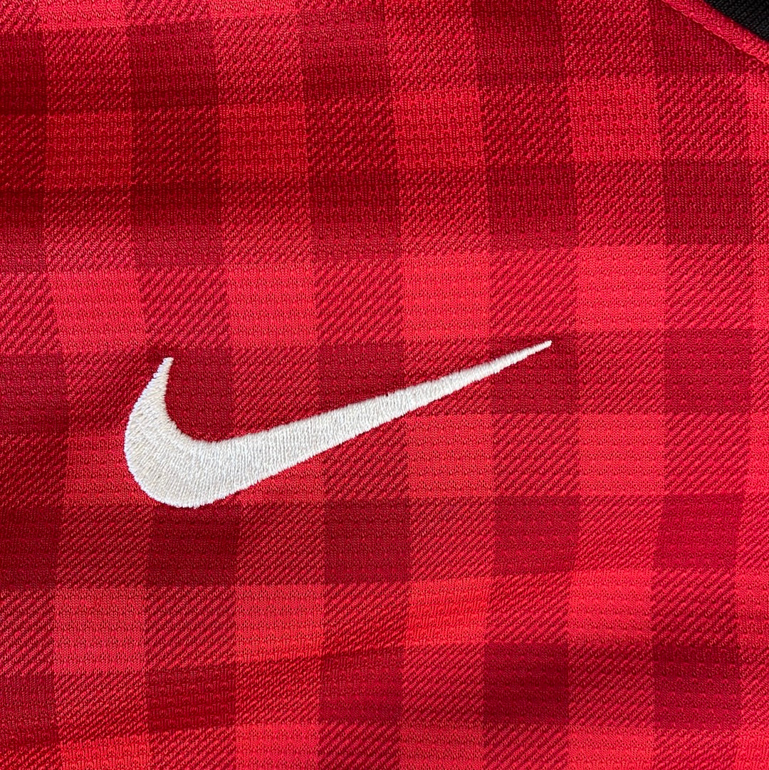 The Manchester United home shirt in the 2012/2013 season. This shirt is a checkerboard design and looks slightly like tartan. This was a unique shirt for United and the pattern has not been replicated since.