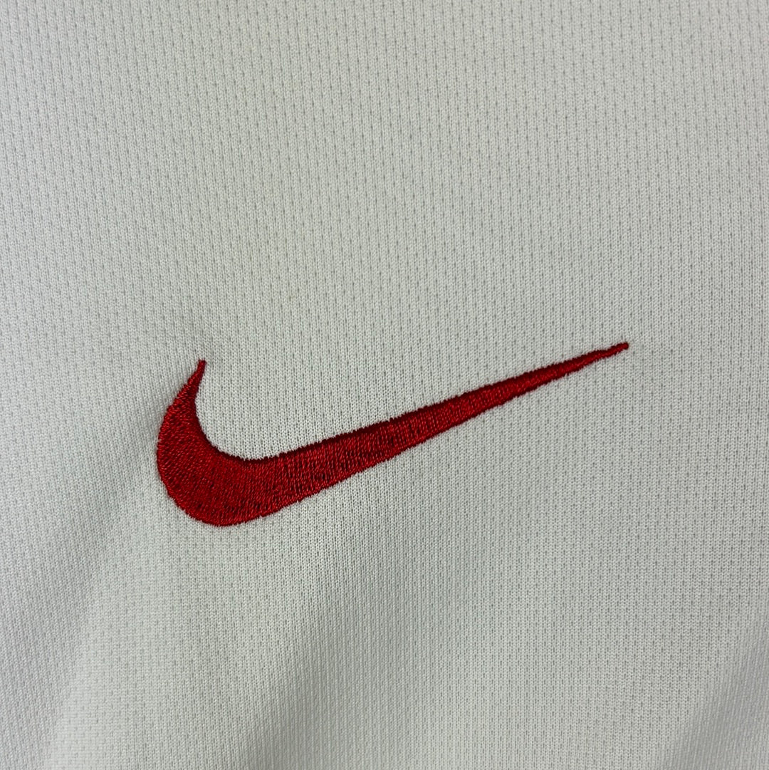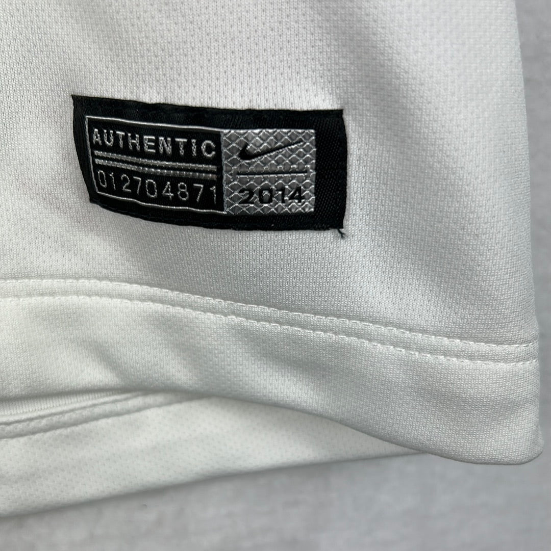 Shirt info: The white away shirt for the 2014/2015 season. It is a little rare to find one in such good condition as white shirts are usually the worst for showing up marks. This short has a distinctive black collar design that gives it a classic look.