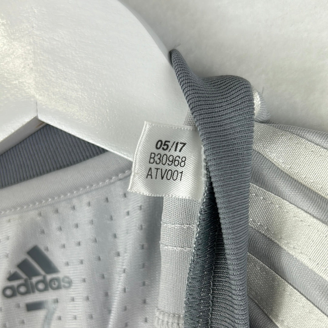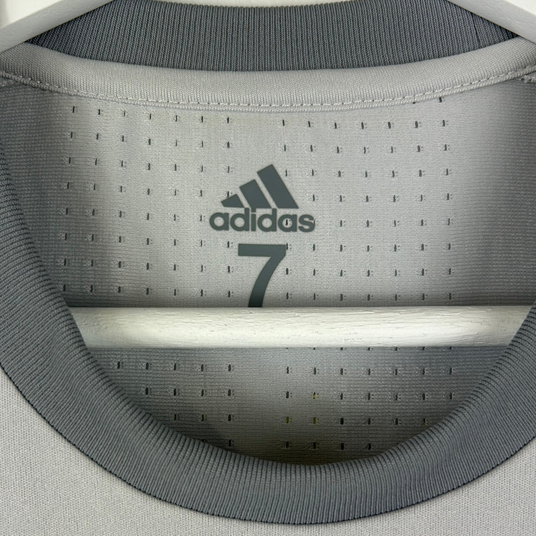 Shirt info: A light grey shirt from United that I am a big fan of. The player version of the shirt has the Adidas logo and United badge printed on the front. The 3 stripes have more luminescent in them so they appear brighter under the flood lights. The shirt has the correct print for McTominay in a Premier League match as well as the Premier League sleeve patch. The shirt is signed by the player on the front.