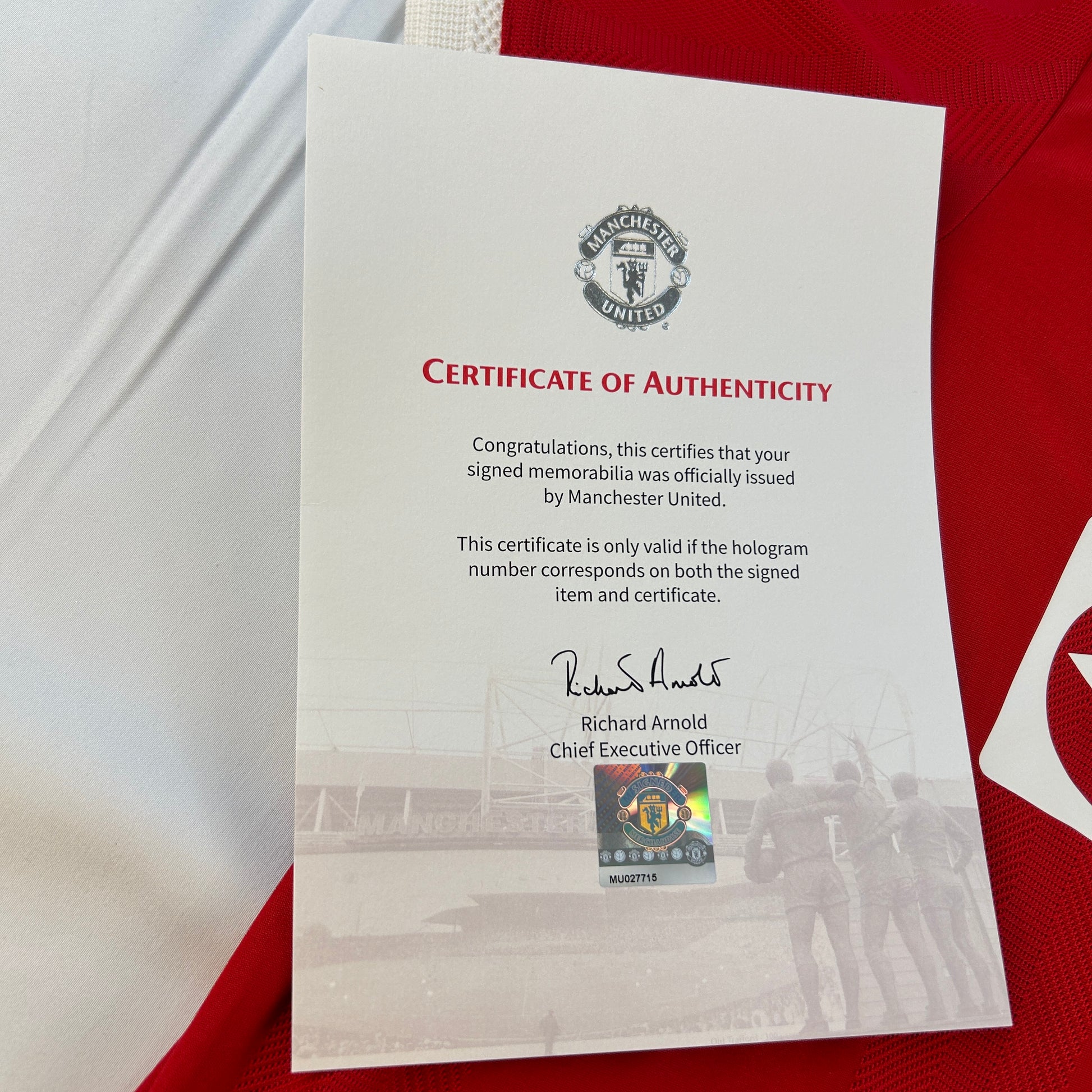 COA: The COA is from Manchester United. It includes a hologram sticker on the shirt and a matching hologram sticker on the authentication certificate. It also comes with a black presentation box from the club.