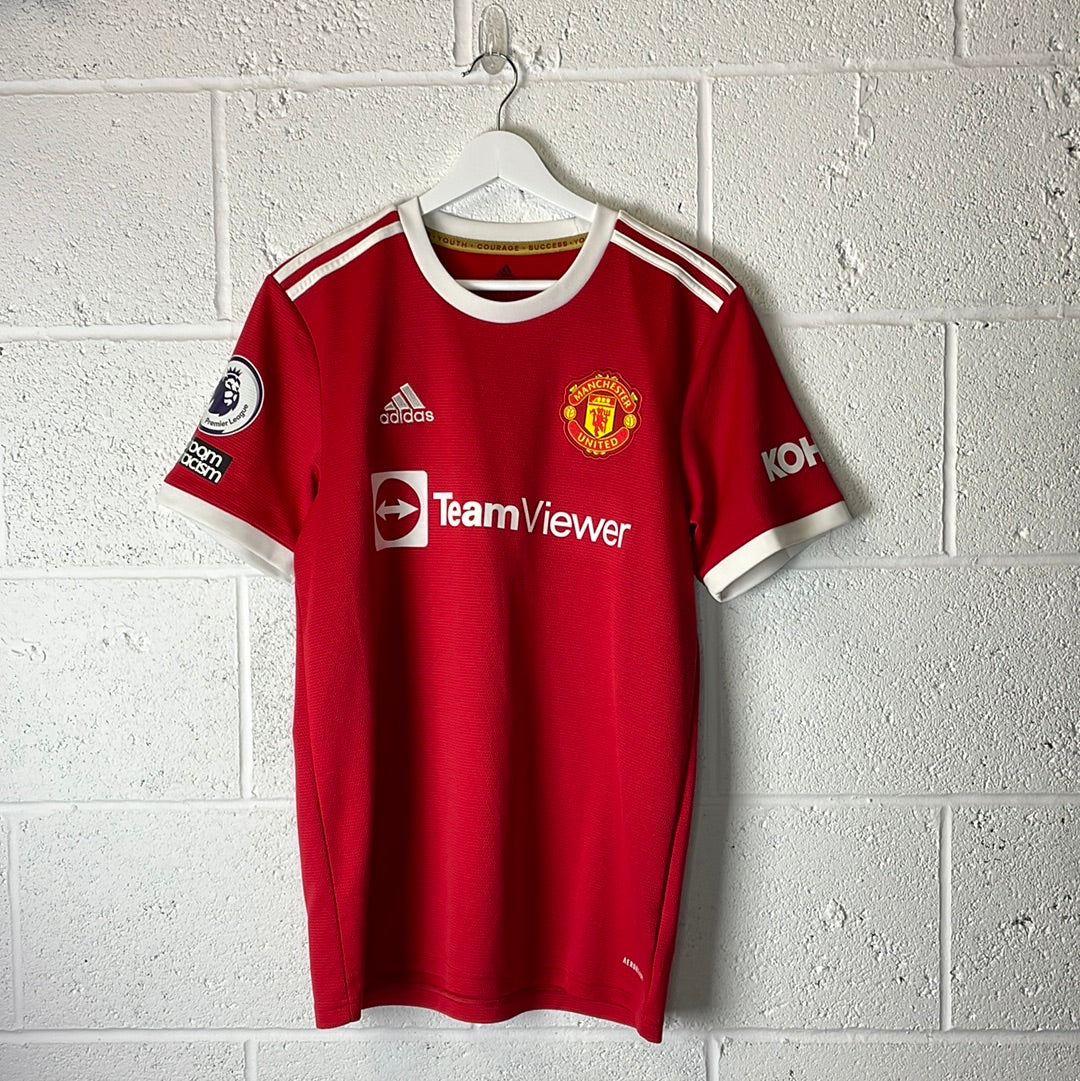 Shirt info: The 2021/2022 home shirt for Manchester United. Short sleeve and in as-new condition.