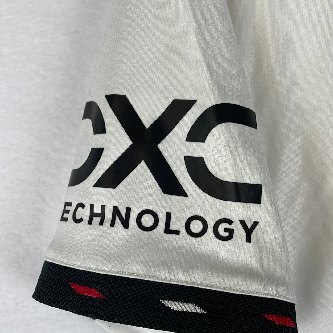 Shirt info: A nice white away shirt for Manchester United in the 22/23 season. This has the team viewer sponsor in black on the front and the DXC sleeve sponsor.