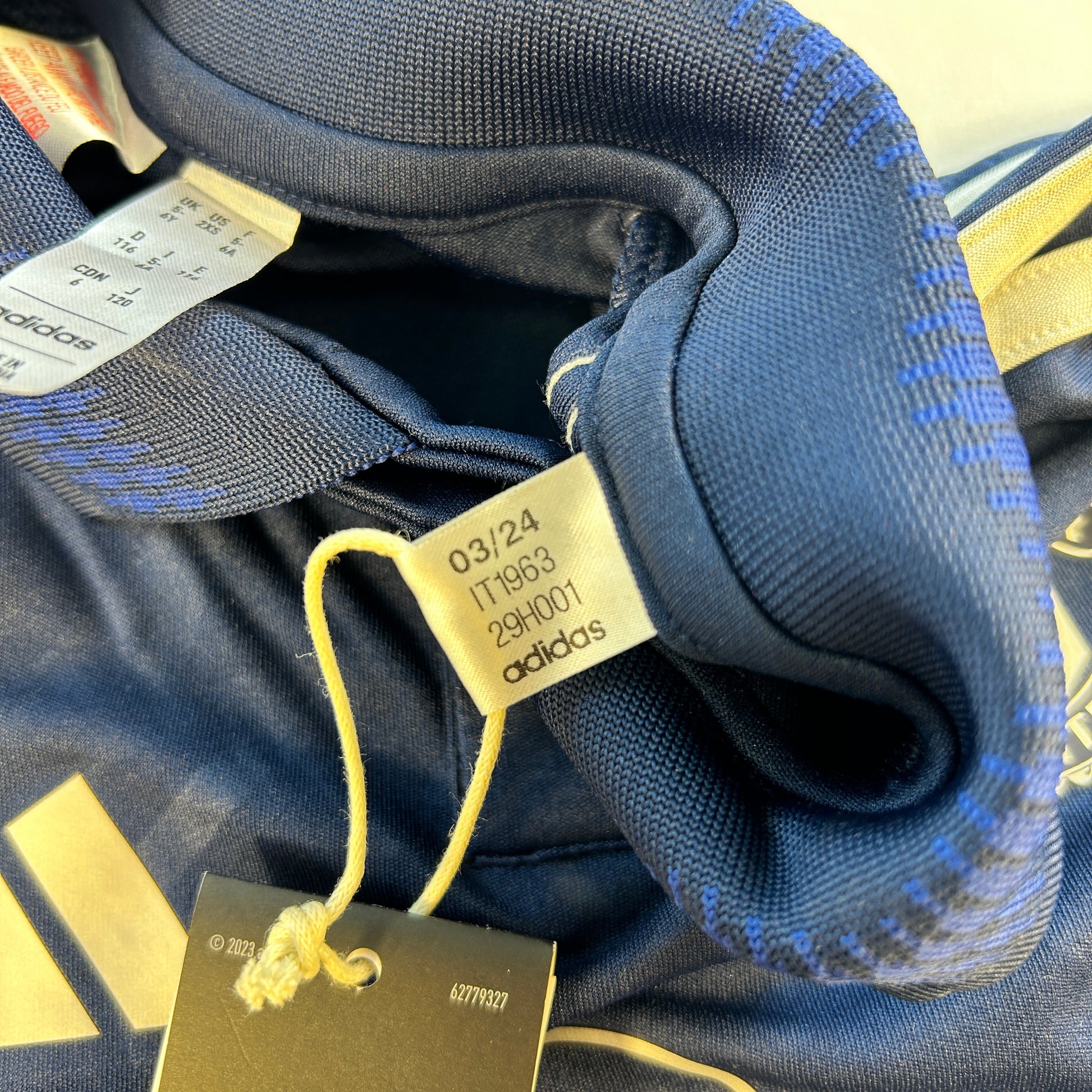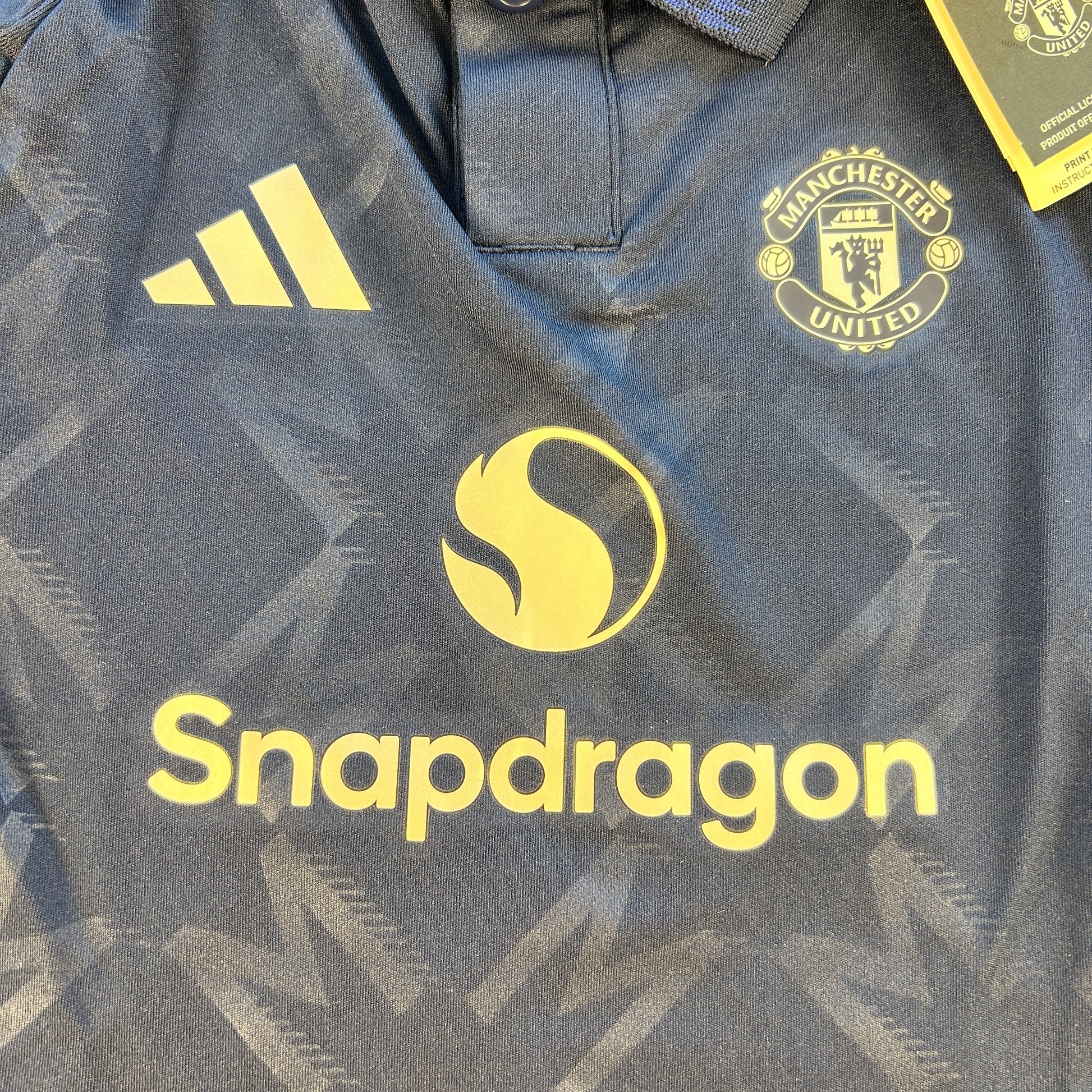 Shirt info: A blue collared away shirt for Manchester United in the 24/25 season.