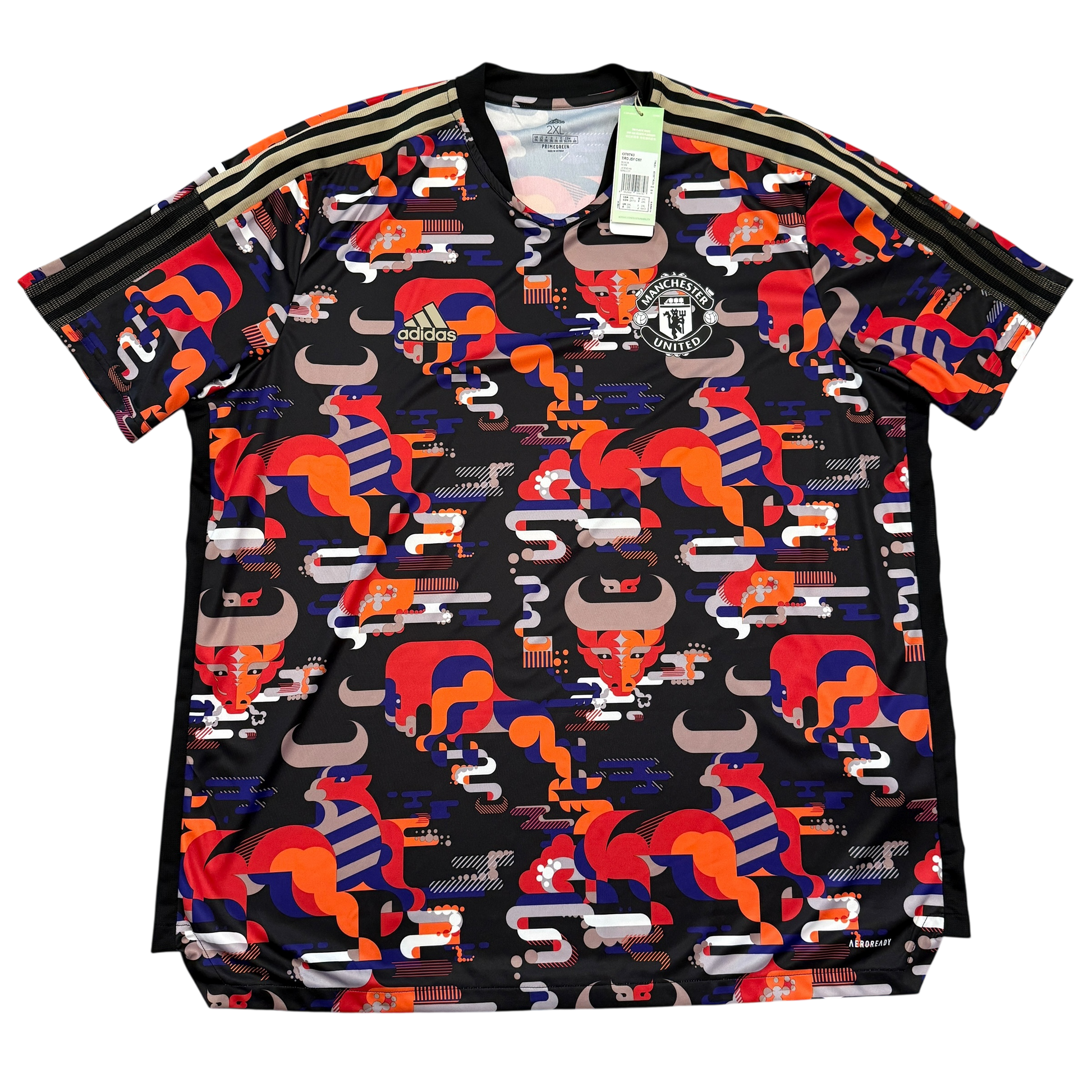 Shirt info: This is the 2020/2021 Chinese New Year training top. As you can see from the photos, it's a bold design that really stands out. The badges and Adidas logo are printed rather than embroidered. This was part of the Manchester United Chinese New Year range for the year of the OX. It also included a jacket with the same pattern in red and black.