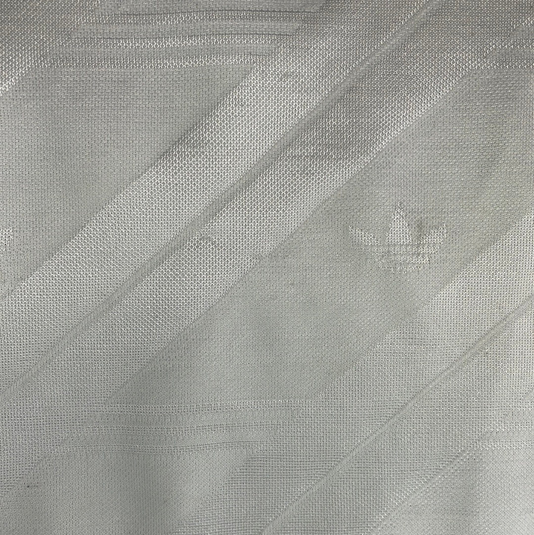 Shirt info: 1986/1987 & 1987/1998 away shirt for Manchester United. The shirt has a diagonal line pattern with the Adidas logo replaced all over the shirt.