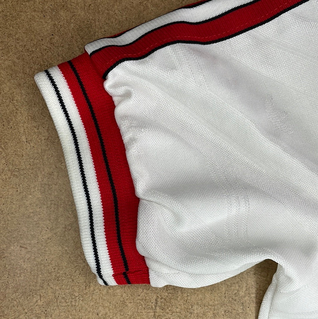 Authenticity Check Notes: The shirt print and labels check out to other 1986 away shirts.