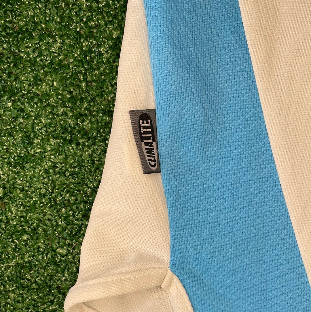 Shirt info: The Marseille home shirt in the 2000/20001 season. Khalifa Airways sponsorship on the front including the bird from their logo. I am not sure they could have gotten away with a logo any bigger than this, it takes over the whole shirt!