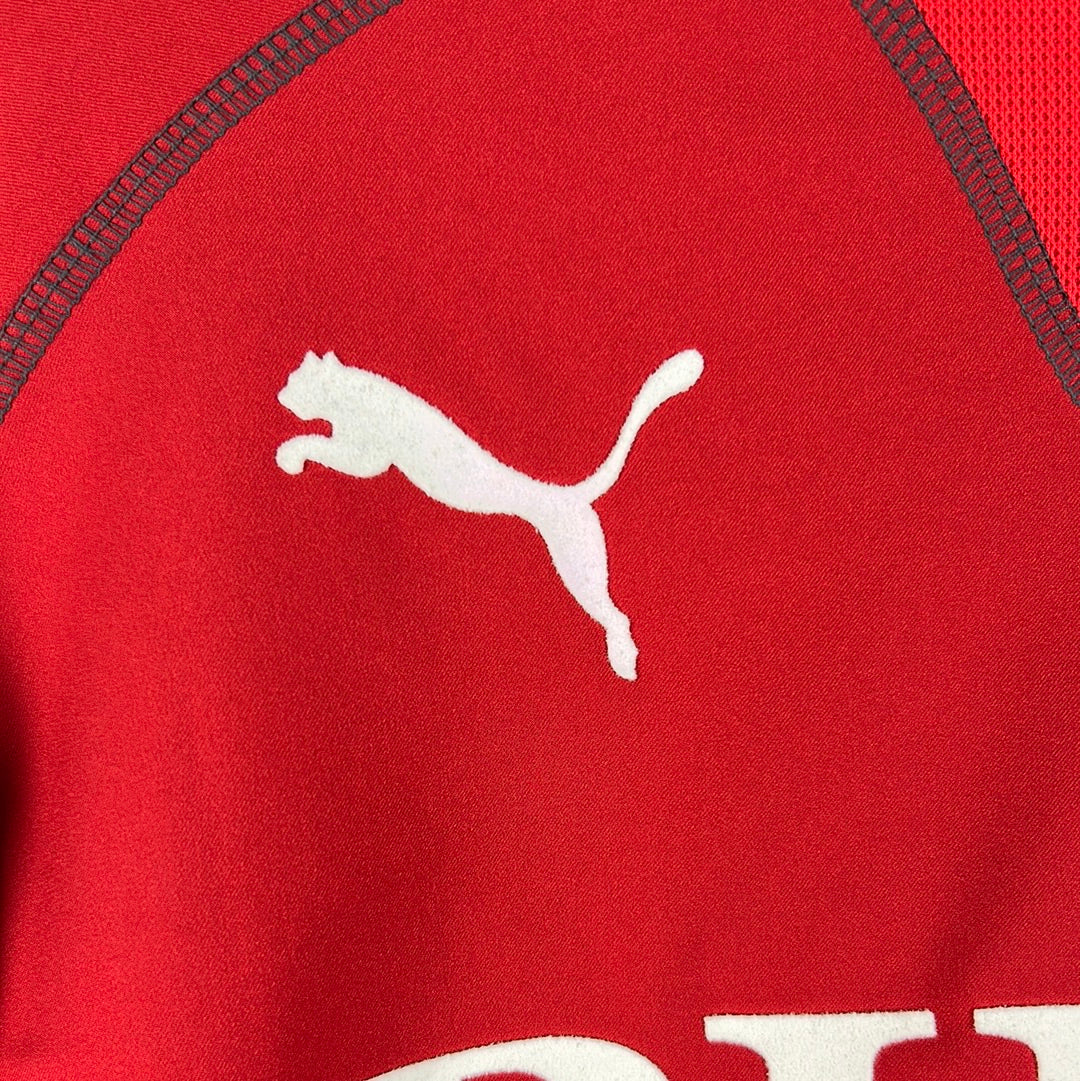 Match Worn Details: The shirt has come from a large collection of match-worn shirts. The COA for this shirt has not been located yet. The shirt is clearly a player-issue shirt with the larger player print, large Premier League sleeve patches and felt Puma logo. The Pipex front sponsor is also felt.
