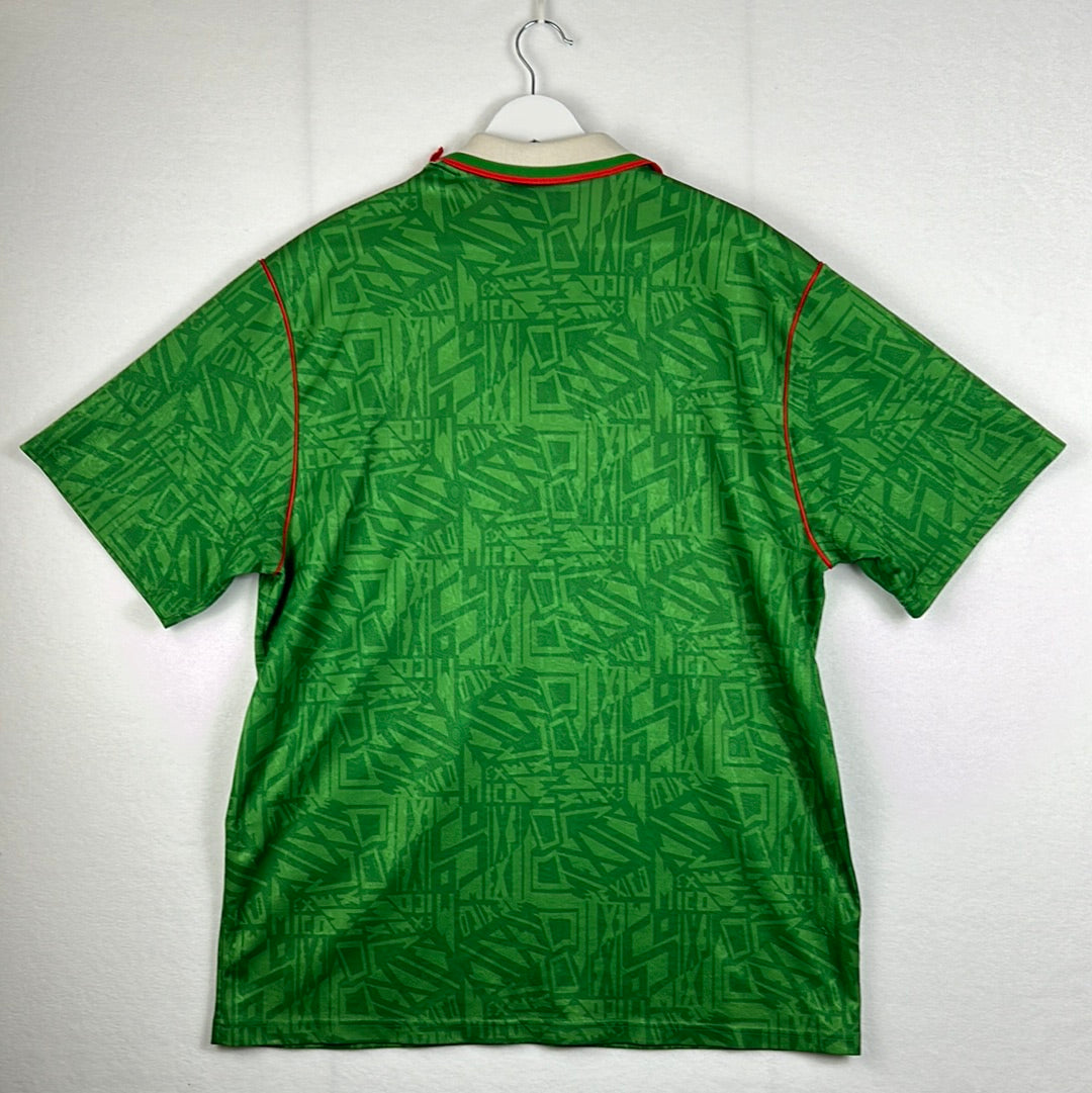 The Mexico 1994 home shirt is a notable piece in the world of football kits, especially for its distinctive design that captured the spirit and cultural identity of Mexican football during the 1994 FIFA World Cup in the United States.